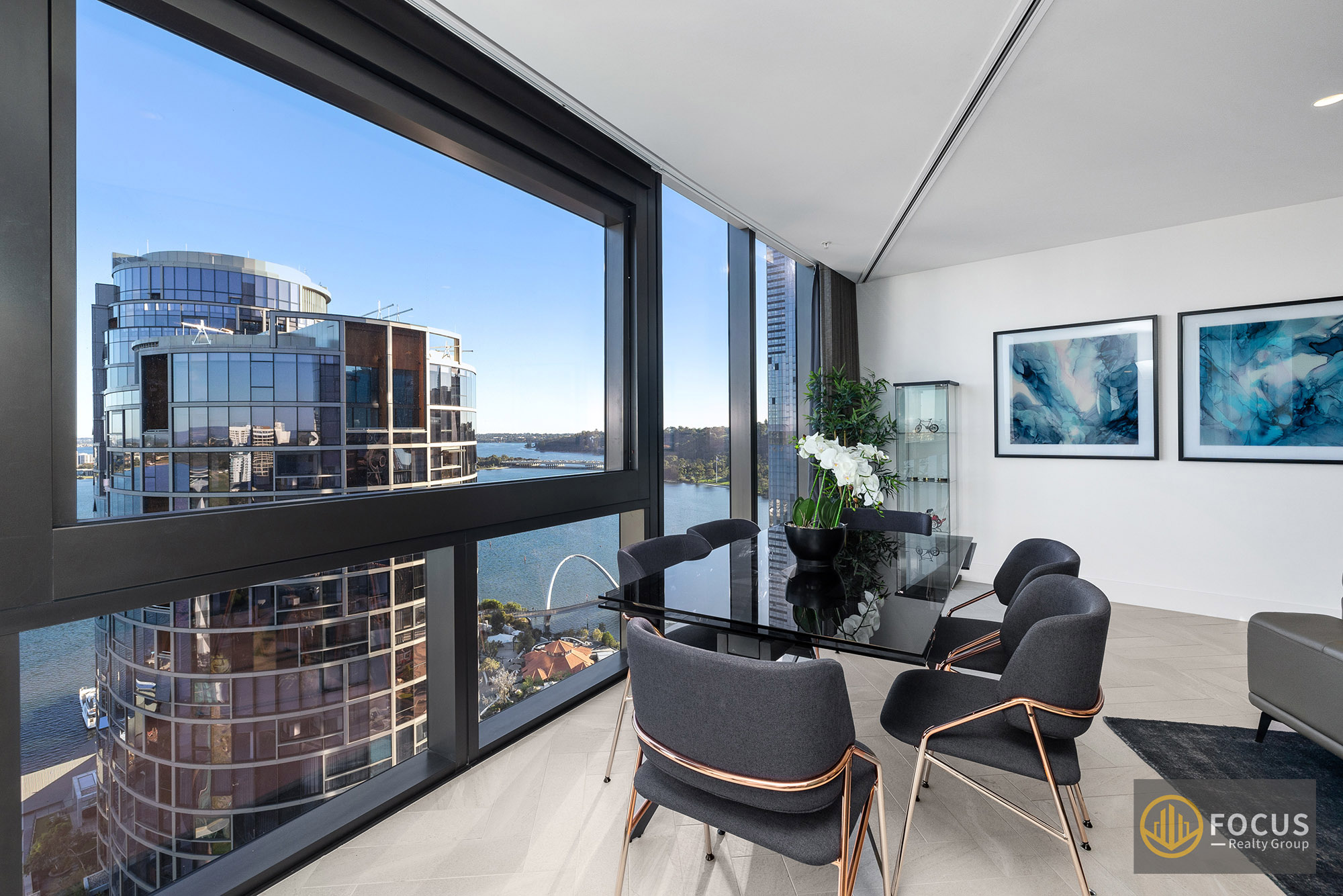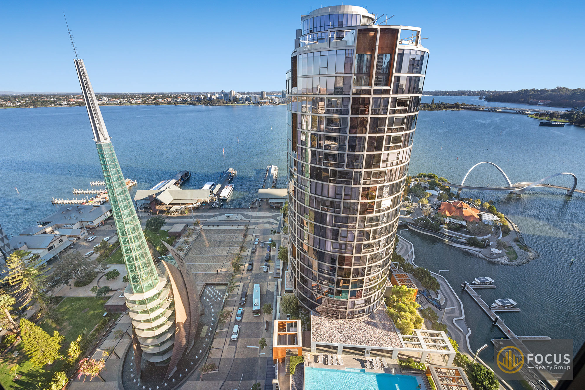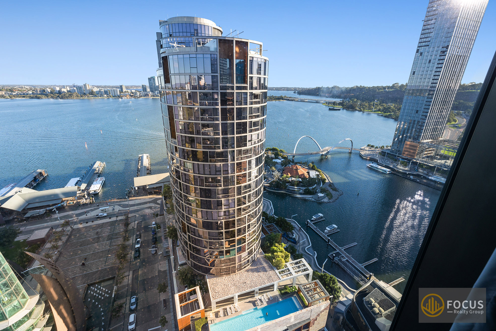 Exclusive Luxury Living Atop Ritz-Carlton: Stunning Apartment with Views in Perth CBD Explore luxury living in this stunning apartment atop the prestigious Ritz Carlton Hotel on level 20. This unit offers a glimpse of Perth's beauty from every corner. The unit overlooks South Perth and Elizabeth Quay, and it is nestled on the picturesque waterfront of the Swan River, surrounded by the lush expanses of Kings Park and Stirling Gardens.