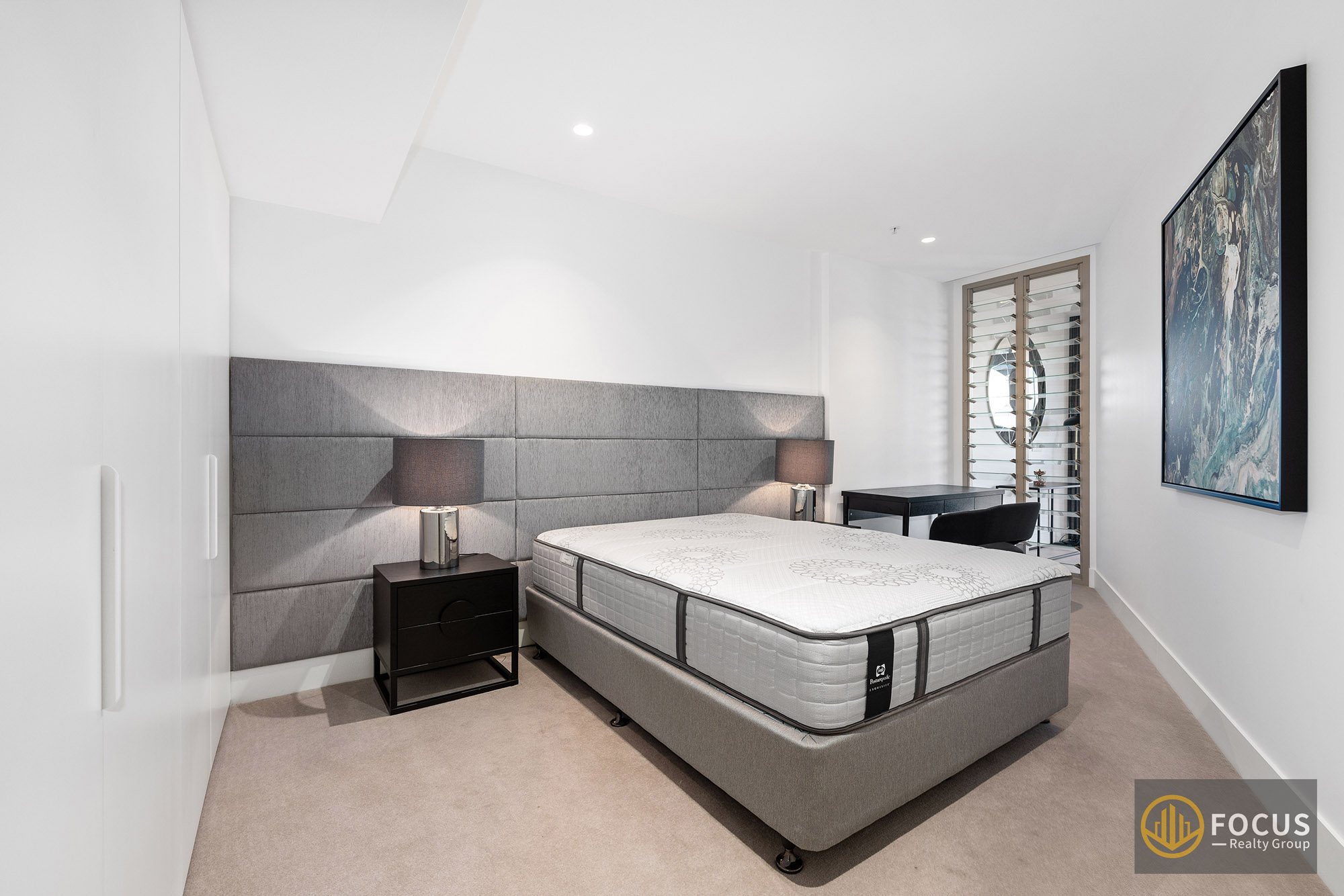 Features: • 2 spacious bedrooms with built-in robes • 2 bathrooms with full-height tiling and mirror lights • A chef's kitchen equipped with stone benchtops, gas cooktops, ovens, built-in fridge, freezer, and dishwasher. • Open-plan lounge, kitchen, and dining area • Laundry facilities • Ducted heating and cooling for year-round comfort • Secure car bay with lockable storage • Secure building and lift access, complemented by remote control garage access and Intercom for enhanced security