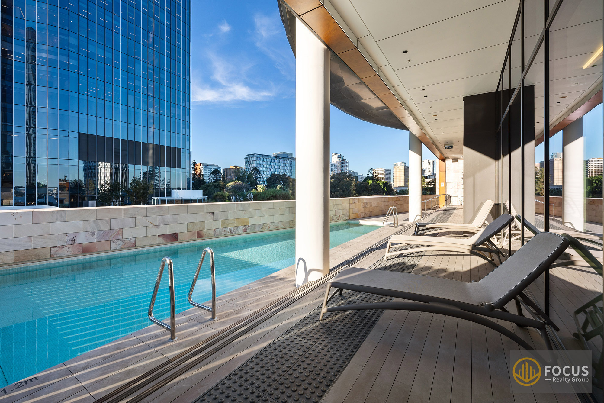 luxurious living facility: Residents enjoy access to a range of resort-style amenities including a heated pool, gym, resident's lounge, BBQ facilities, communal areas, and concierge services, as well as world-class services provided by The Ritz-Carlton hotel below.