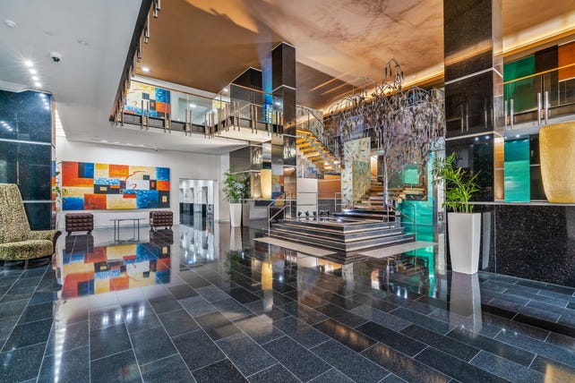 Ivan Tang proudly presents this elegant one-bedroom apartment in the prestigious Condor Tower, perfectly positioned in the heart of Perth’s CBD. From the moment you step into the grand marble-finished lobby—complete with a striking gum tree sculpture—you’ll be immersed in luxury, style, and architectural finesse.
