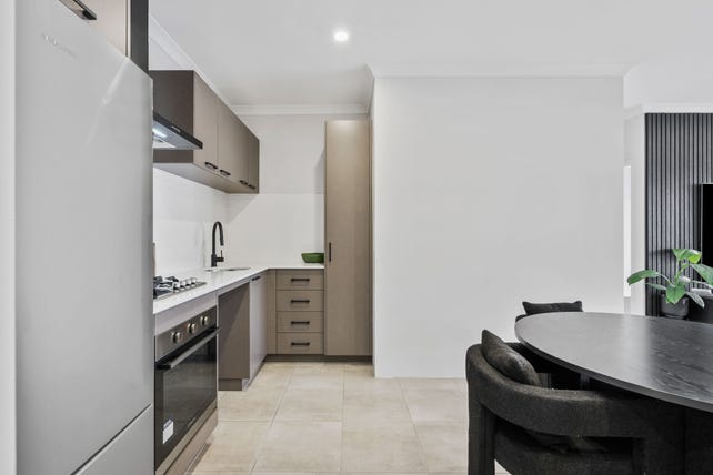 Step inside and be captivated by the spacious open-plan living area, featuring high ceilings and an abundance of natural light. The well-appointed kitchen boasts sleek appliances and ample storage space, perfect for the home chef.