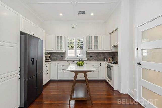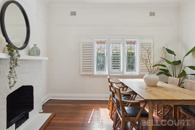 Inside this 3 bedroom, 2 bathroom natural light dances through ornate windows, illuminating warm wood tones and crisp white walls. The dining room, anchored by a decorative fireplace and original cornices, flows effortlessly into the heart of the home. The kitchen is equally impressive, stylish yet functional, with quality finishes and ample space to cook, entertain or gather family.
