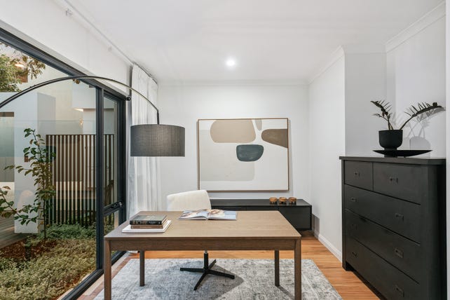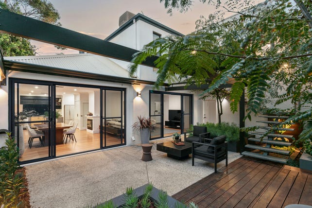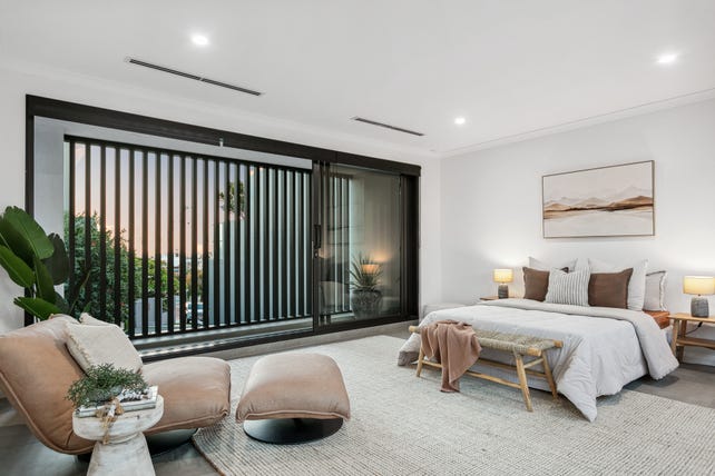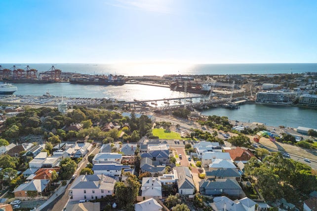 Awaken to sweeping vistas the Indian Ocean stretching beyond Fremantle Harbour, a daily indulgence from the upstairs primary bedroom.