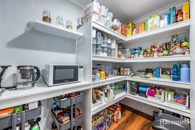 The crisp white kitchen and plantations shutters to the open plan area give a beautiful fresh contrast to the darker features including splash back and pendant lighting. Not only a feature in itself but a practical kitchen for the busiest of households with a galley style layout, extra-large island bench with breakfast bar and hidden push cupboards. A double fridge recess with plumbing, Westinghouse 900mm appliances as well as a Bosch dishwasher are in theme with the quality of this home. The large walk-in pantry offers so much extra storage and space for extra appliances allowing the main kitchen to remain clear and free of clutter.
