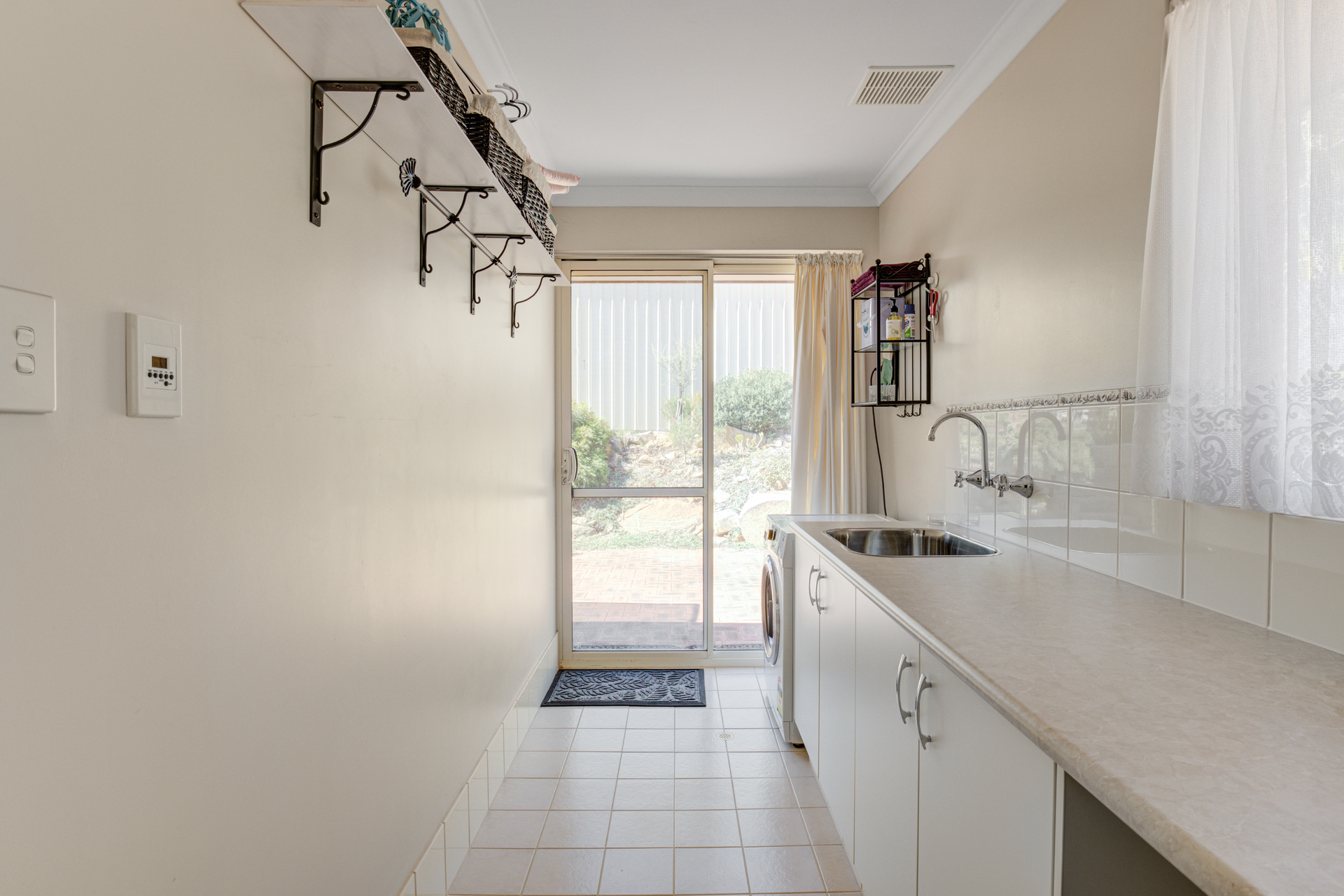 At the rear of the home is a large 13 mt x 8 mt outdoor patio and there are limestone retaining walls all around the home. The shed has two access concrete driveways and a carport attached. The gardens are all filled with native plants and ground covers. Because of the property bordering the John Forrest National Park, there are a number of native animals and birds visiting regularly.