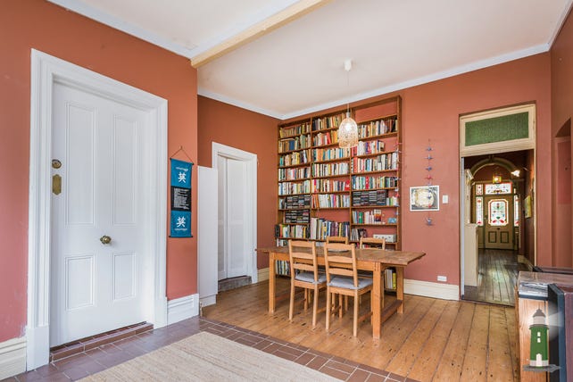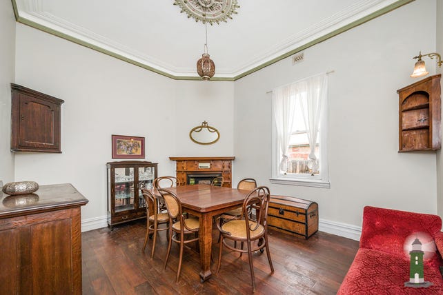 The stunning stained glass entrance door invites you from the elevated, wrap around front veranda into the wide central hallway. Opening off the hall are 5 spacious rooms which offer flexible options, use them all as bedrooms, a dining room, separate lounge or a home office. Originally configured with a stunning formal lounge framed by a feature fireplace and an ornate bay window which looks out on the front garden, a formal dining room to the rear with a beautiful antique fire surround, plus three good sized bedrooms. There is plenty of room for a large family or to reconfigure the layout to suit your unique requirements.