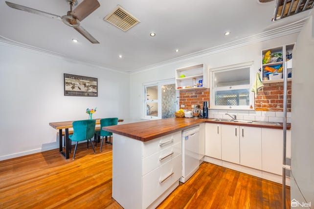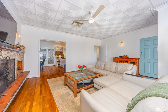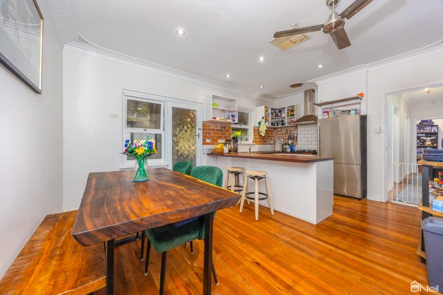 Recently renovated, this 3-bedroom, 1-bathroom residence features rich matte-finished Jarrah floors, soaring ceilings, and a modern finish. The heart of the home is a spacious lounge with an amazing feature fireplace - perfect for cosy nights - and it flows seamlessly to a chic dining space and standout kitchen. The kitchen pairs rustic exposed brickwork with timber benchtops and quality appliances for a warm, modern feel. Each bedroom is generously proportioned, and the fully renovated bathroom is beautifully finished, with a freestanding tub, frameless glass shower, and stylish tile feature. There's also a versatile multipurpose room at the rear, ideal as a home office, creative space, or kids' zone. Ceiling fans throughout, AND split-systems in the lounge and master bedroom provide excellent climate control throughout the home.