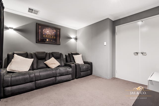 The heart of the home lies in the expansive, light-filled open-plan living and dining area, perfect for both relaxed family living and stylish entertaining. The modern kitchen is a chef's delight, offering a stone benchtop, abundant storage, sleek appliances and a gas cooktop. A separate theatre room provides an additional living space for movie nights and family gatherings.