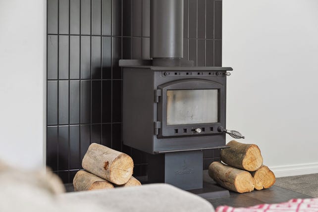 o Spacious lounge room featuring cosy wood fire heating