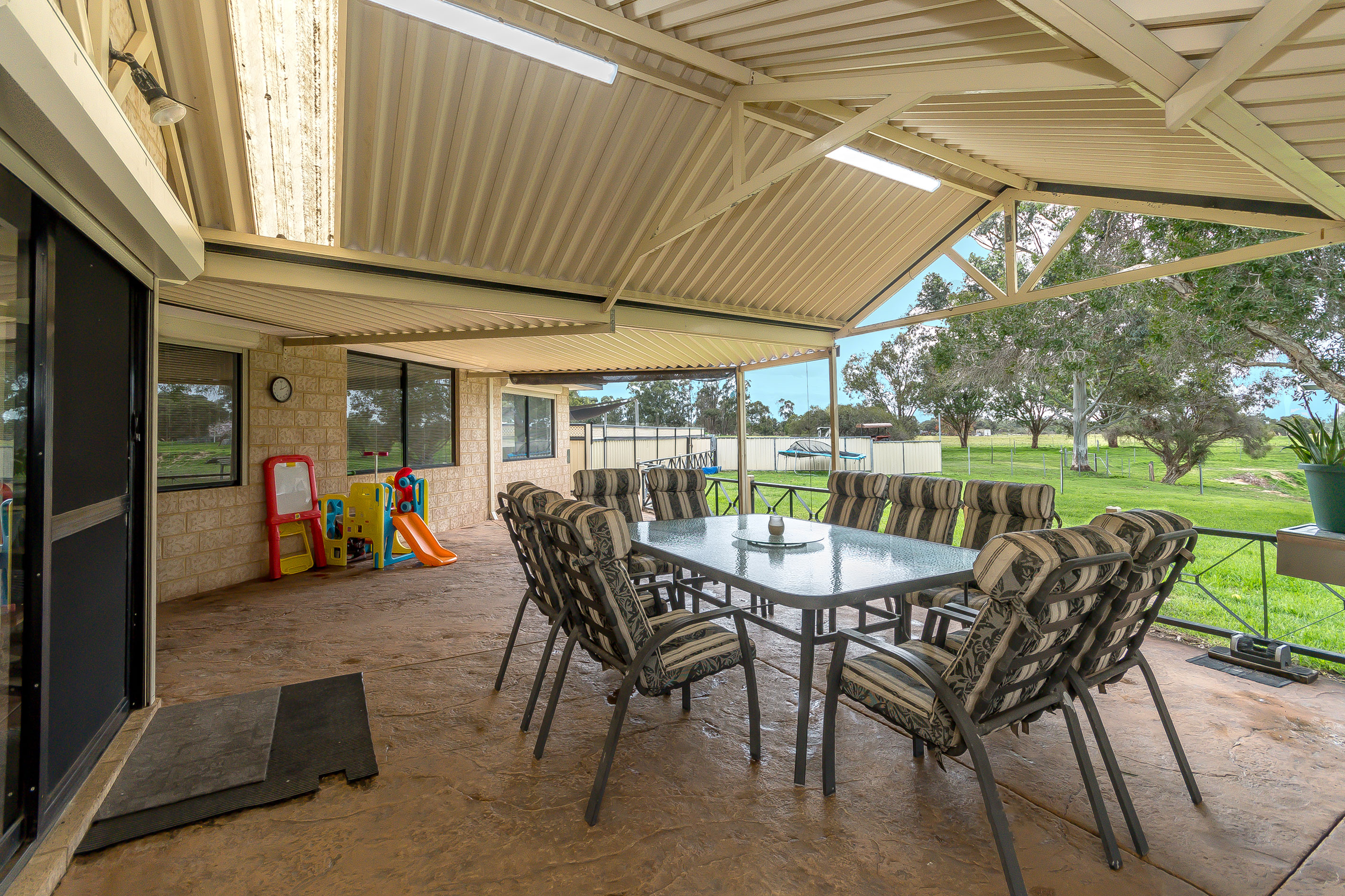 * Mains waters, bore retic paddocks • Formal lounge, kitchen/family/meals