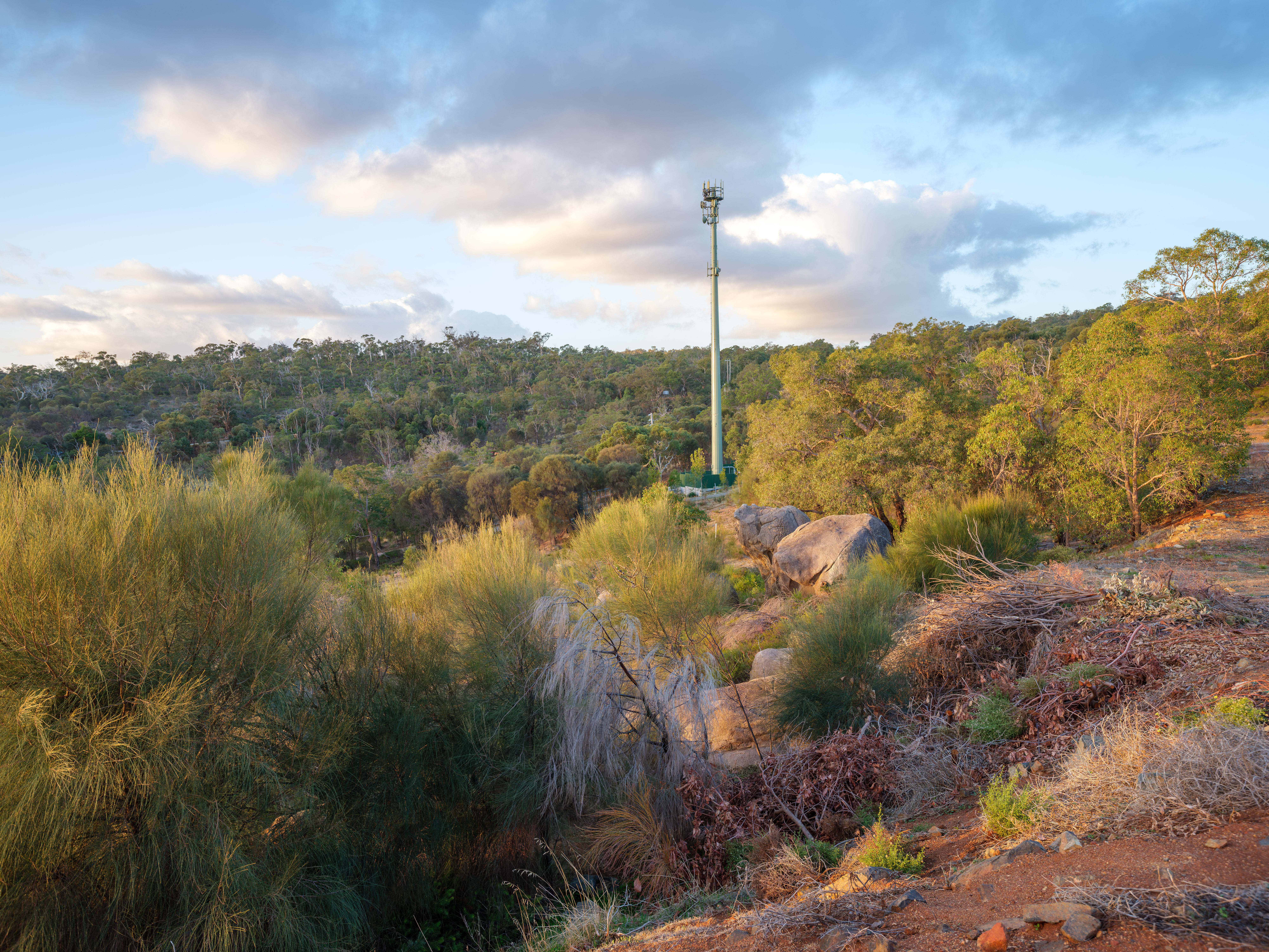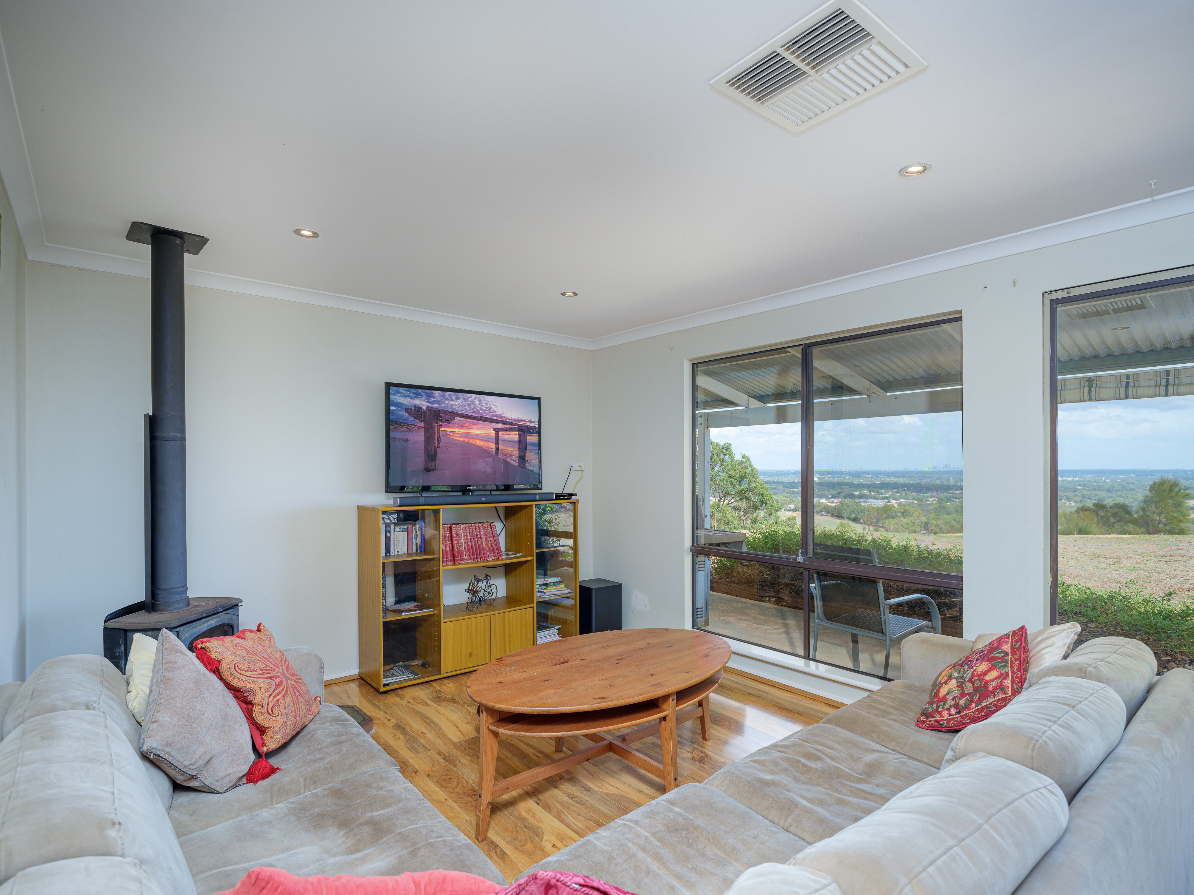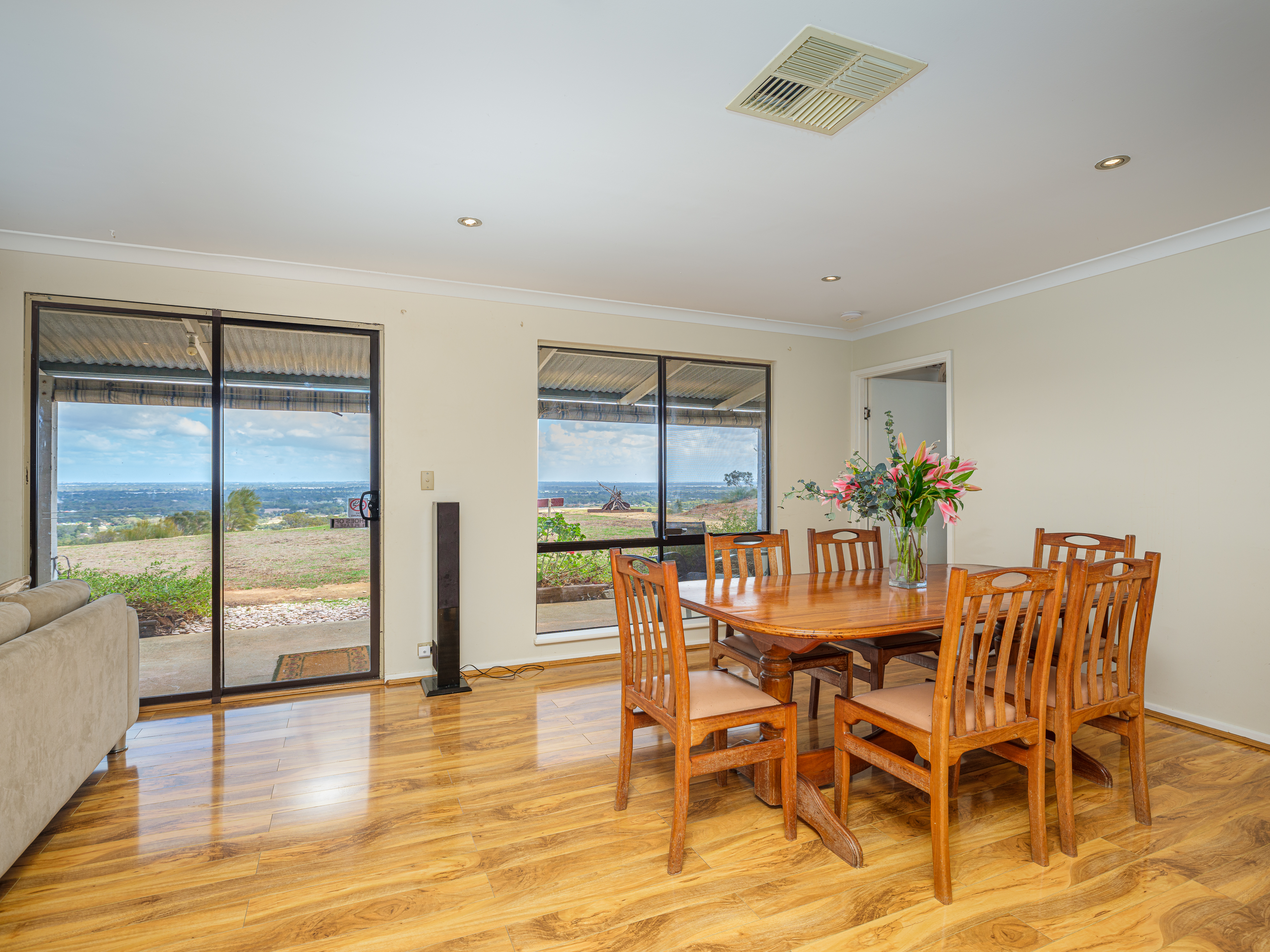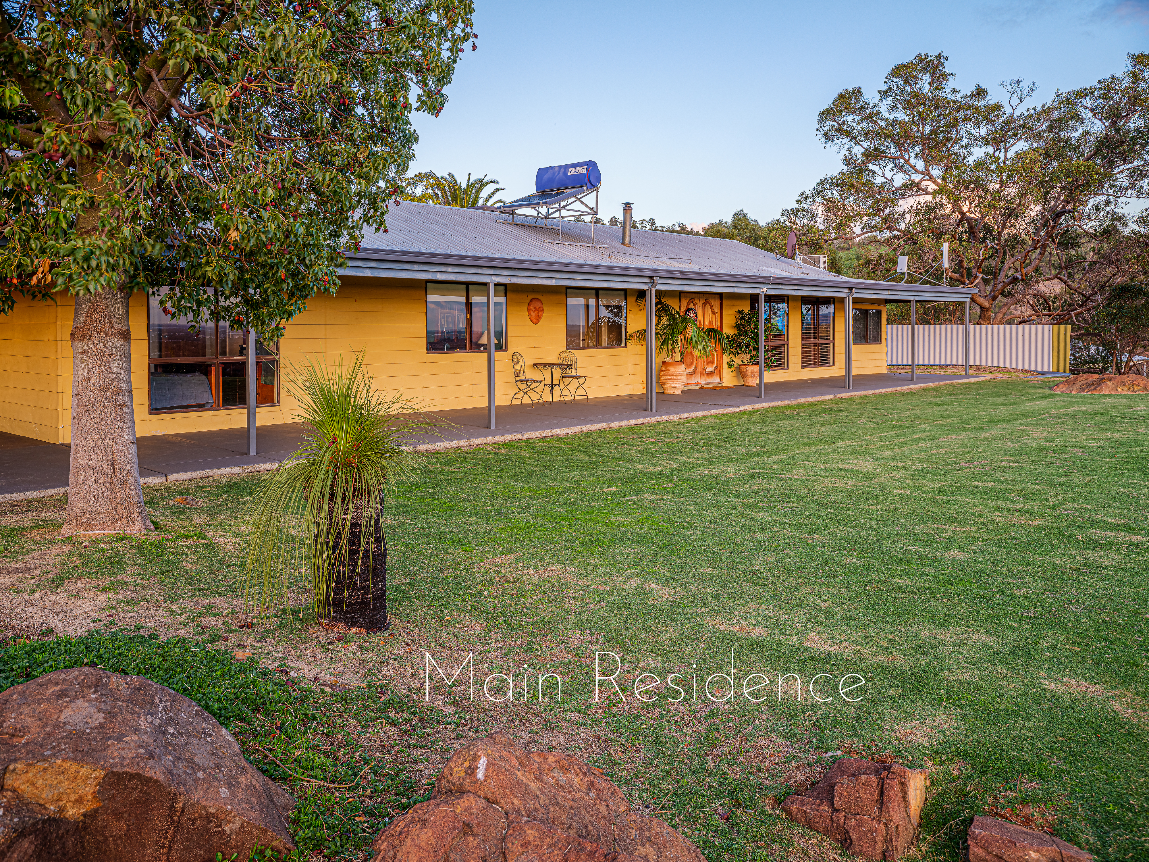 At the highest point and the end of the property drive, you are met by the two homes overlooking the expansive 15.8-acre (64,000m²) native bushland, complete with picturesque rocky outcrops and stunning city views and sunsets fit for a feature film. The night time city lights beyond add to the magnificent view, a continuously changing live artistry, making it one of Perth's best and most envied views.