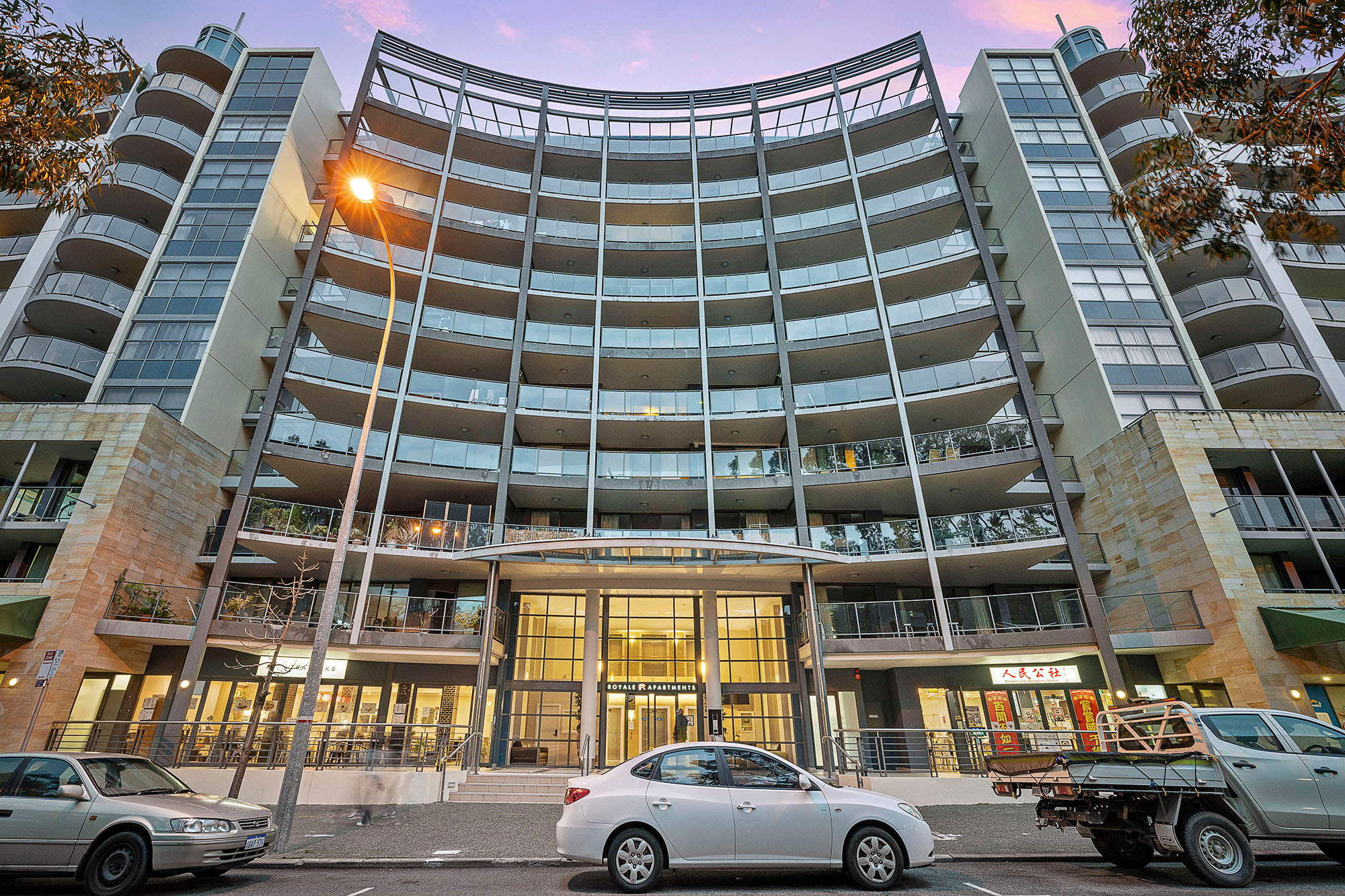 Located on the 7th floor of Perth’s sought after Royale Apartments, unit 152 features two good-sized bedrooms, two bathrooms and one secure car bay. The large open plan design welcomes you into the apartment with the kitchen featuring stainless steel appliances and stone benchtops, and the living/dining area extending onto the 23sqm South facing balcony.