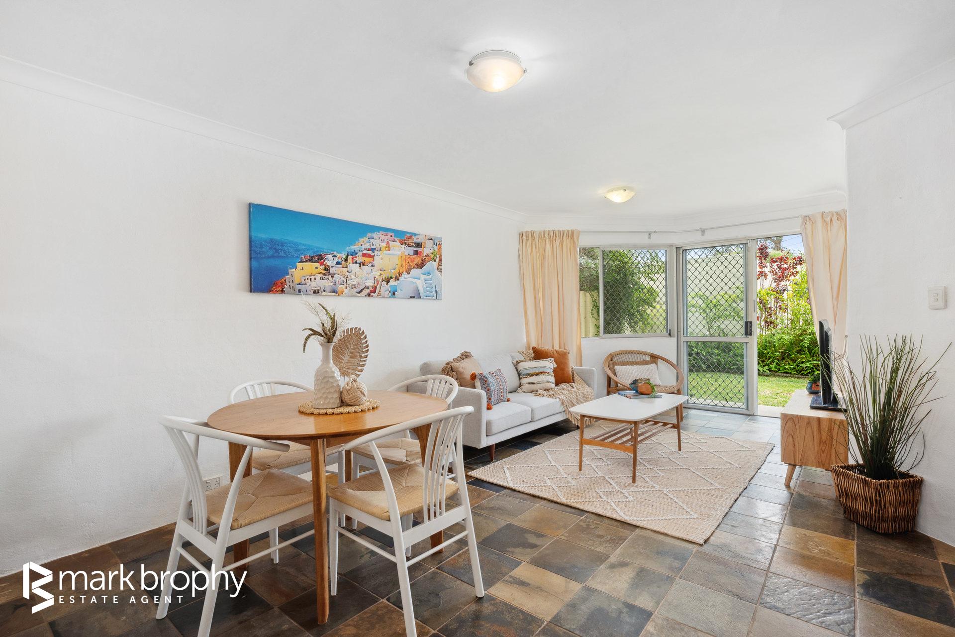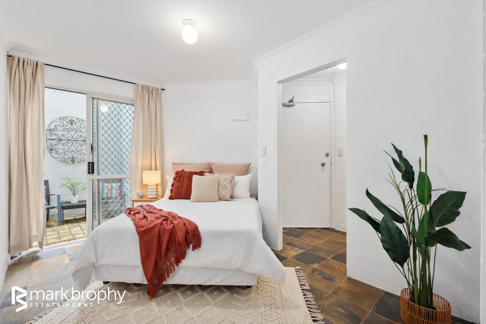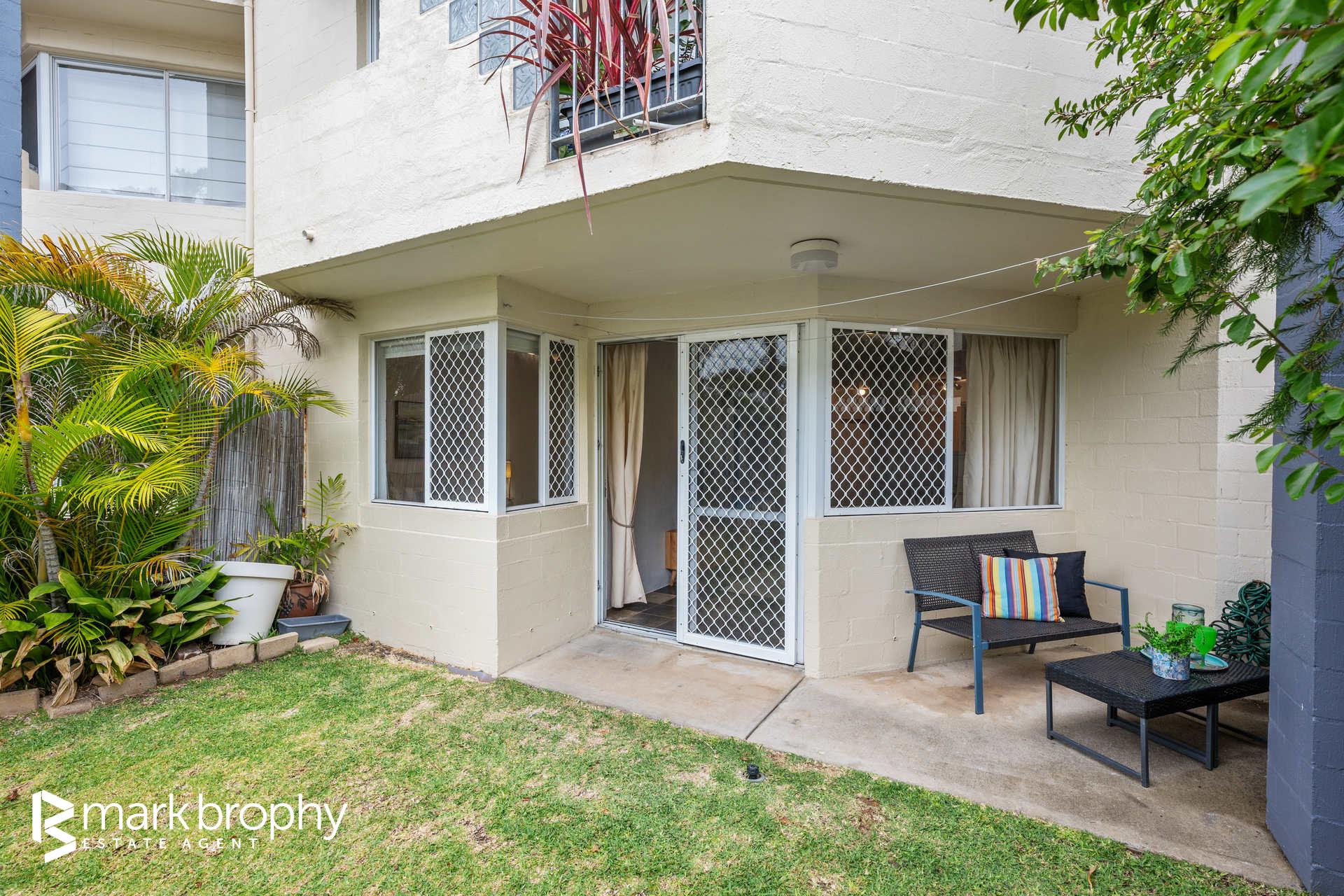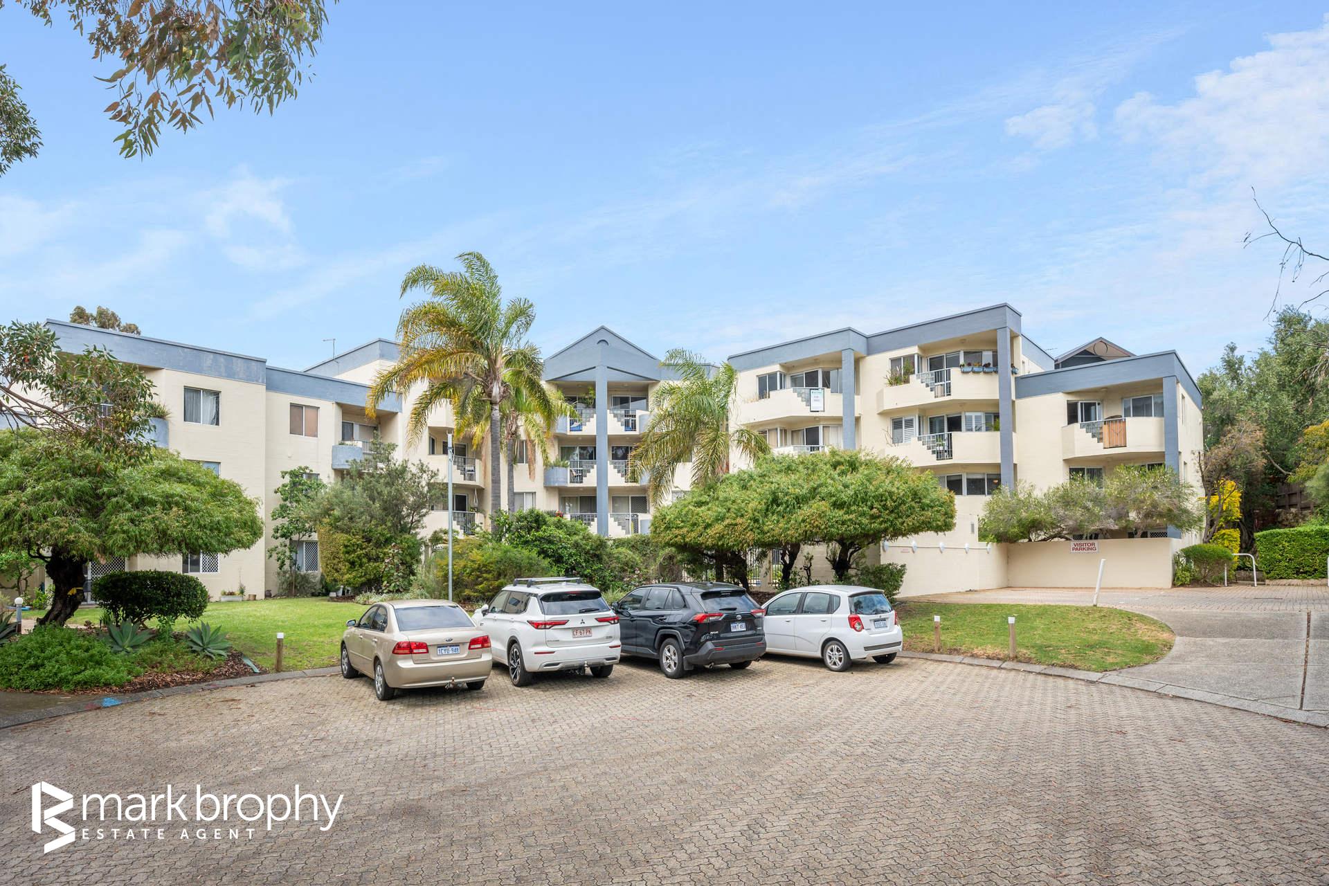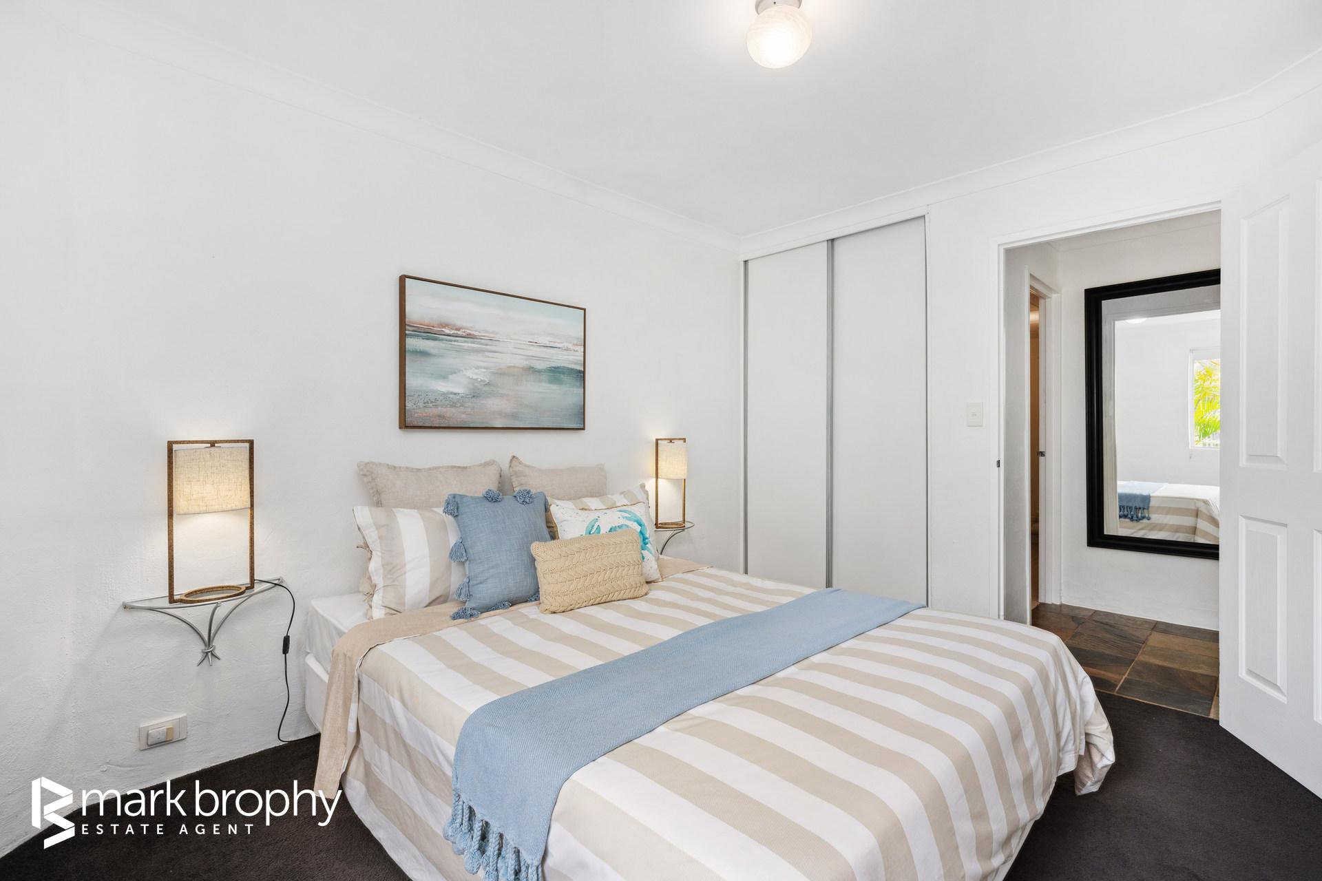 • Good sized colourful kitchen adjacent the dining area • Two bedrooms with built in robes • Leafy green grounds reminiscent of a resort • Ground floor - no stairs • Designated parking for 1 (Council of Owners ratified) • 2 km to Fremantle C.B.D. • Below ground pool