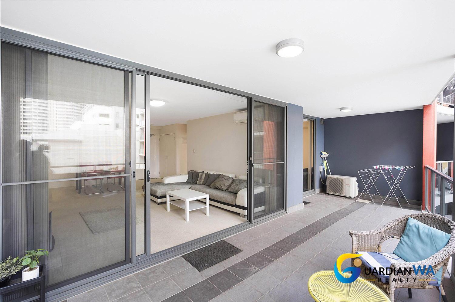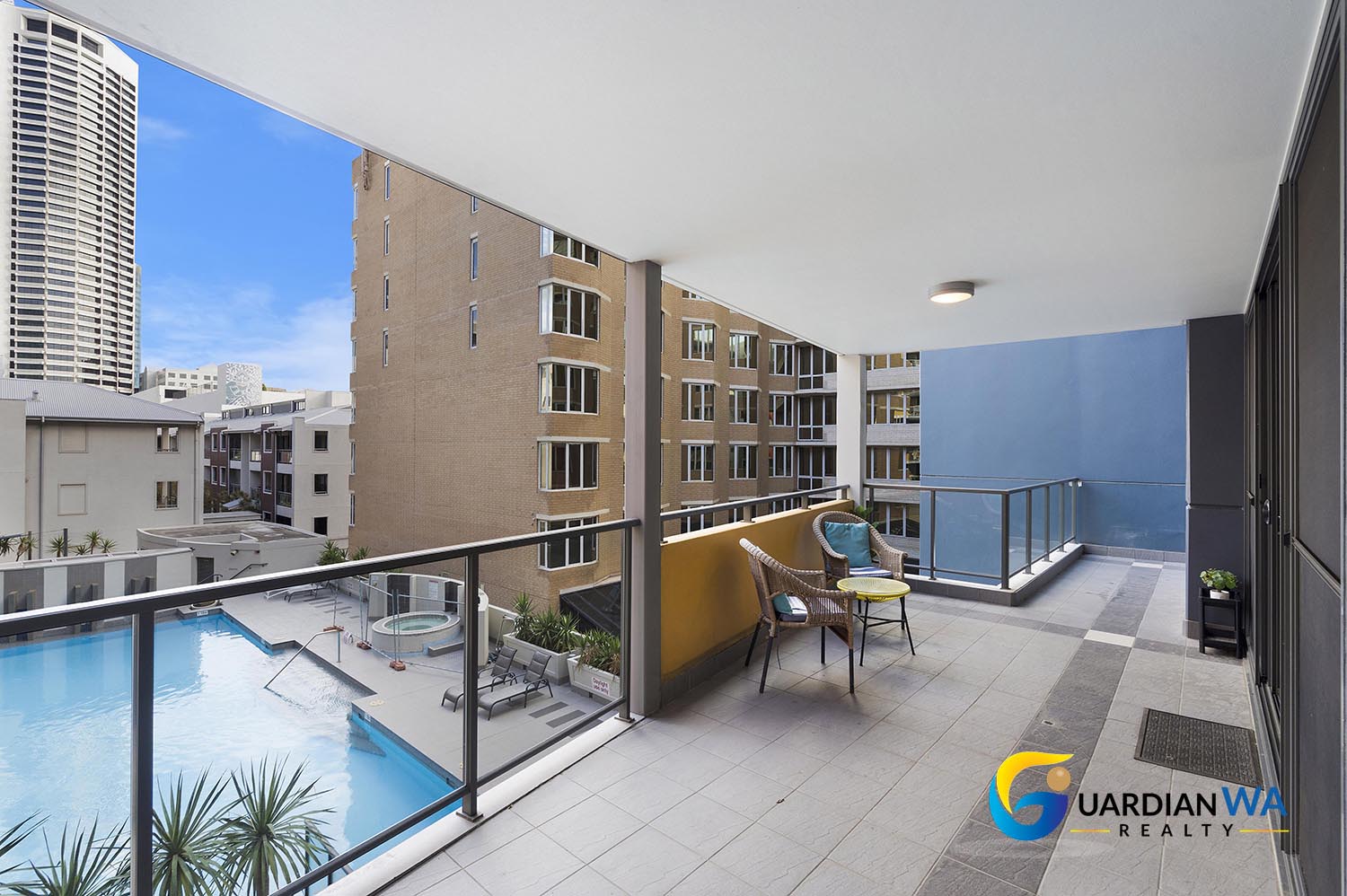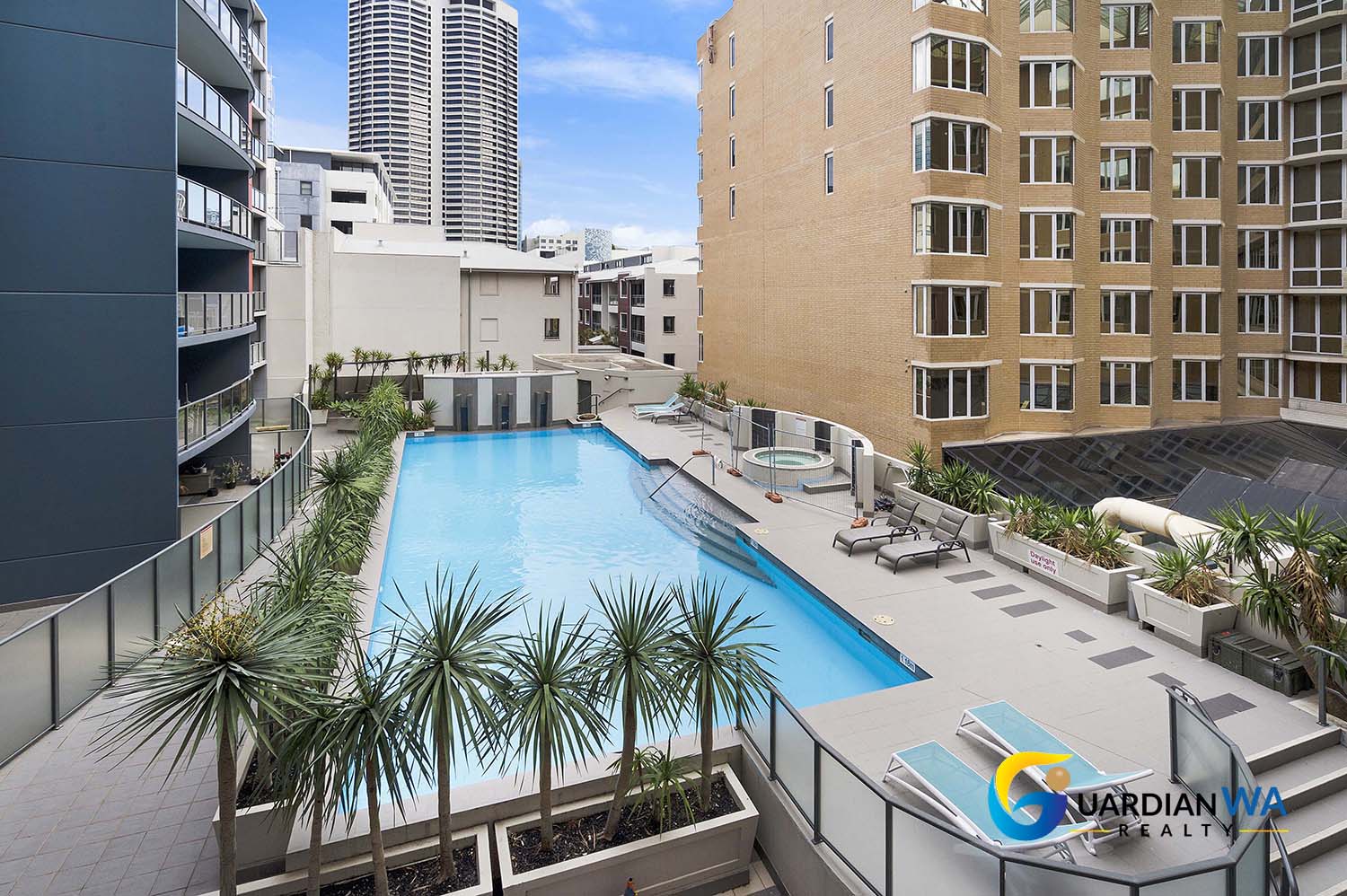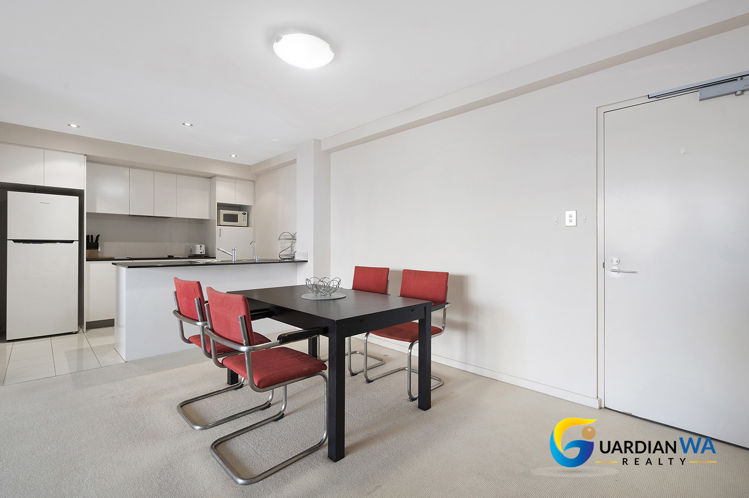 Conveniently located 34/69 Milligan Street. This urban sanctuary offers the epitome of city living, surrounded by premier attractions mere moments from your doorstep. With Perth Arena right at the doorsteps and the city within minutes, walk to river, shopping malls, cafes, restaurants, train station, the list goes on. Facing the swimming pool with huge balcony, this apartment offers tranquility amidst the urban buzz. Featuring panoramic views of the pool, blue sky from the huge balcony. With the expansive balcony, an abundance of natural light, two spacious double bedrooms with ample wardrobes, ensuite and a second generous sized bathroom with integrated laundry facilities, reverse cycle air conditioning and a contemporary open plan kitchen featuring sleek stone benchtops with adequate bench space.