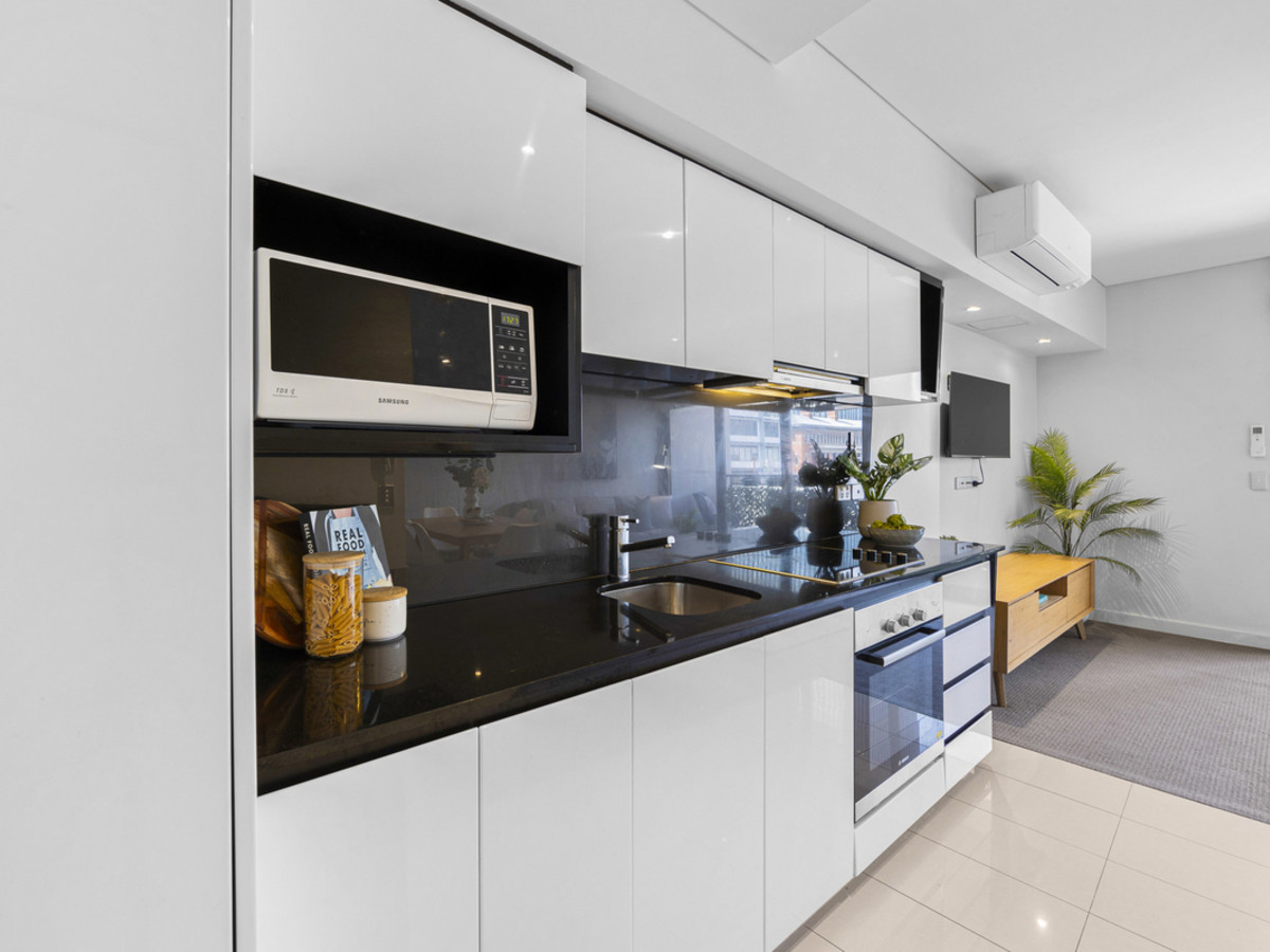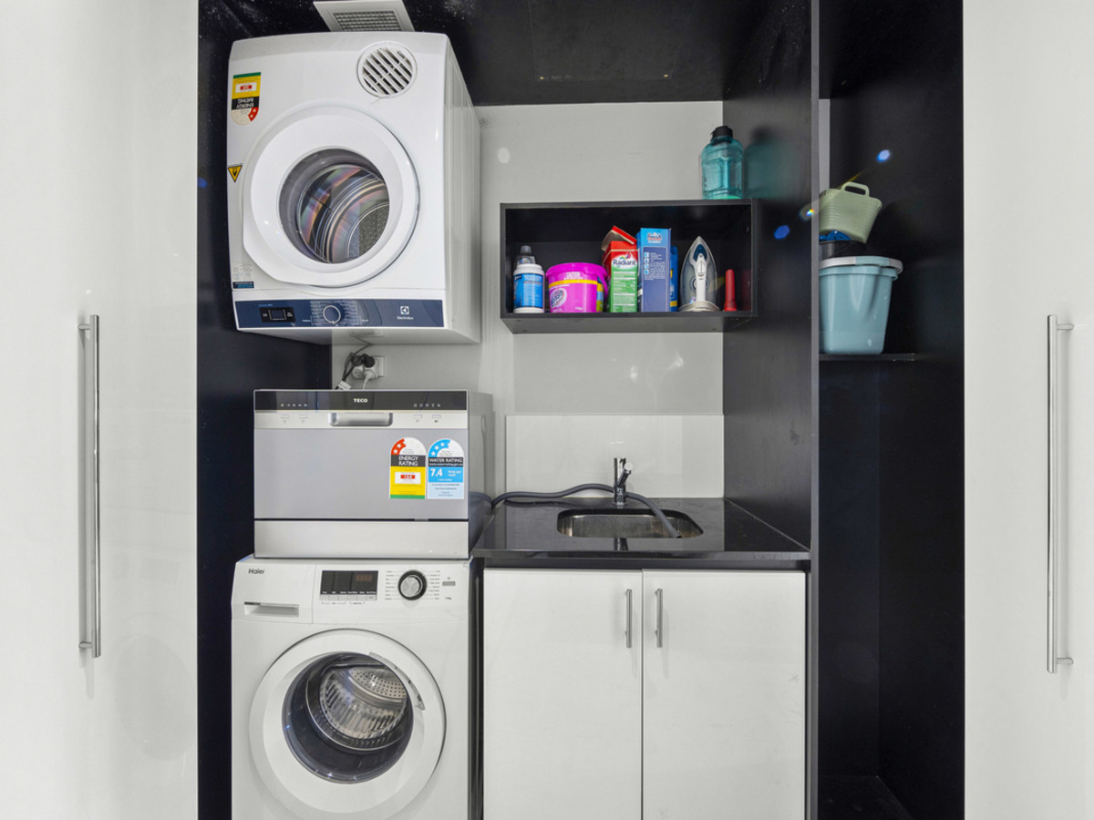 * Located on the 5th floor in the same block as the facilities * Dishwasher, wash machine, dryer and fridge/freezer included * Open planned living with direct balcony access * Generous, light and bright bedroom with built in wardrobes * Modern and sleek bathroom * Well appointed kitchen * Internal laundry and linen storage * Secure, stacker parking
