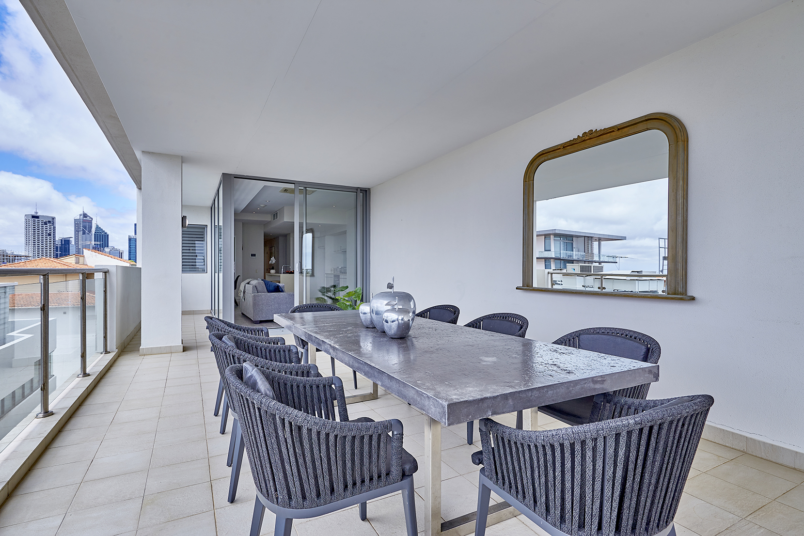 Enjoy Perth's trademark sunsets and balmy evenings from the privacy of your expansive north facing terrace as you drink in the spectacular views across the city scape framed by Kings Park's celebrated native Karri trees.
