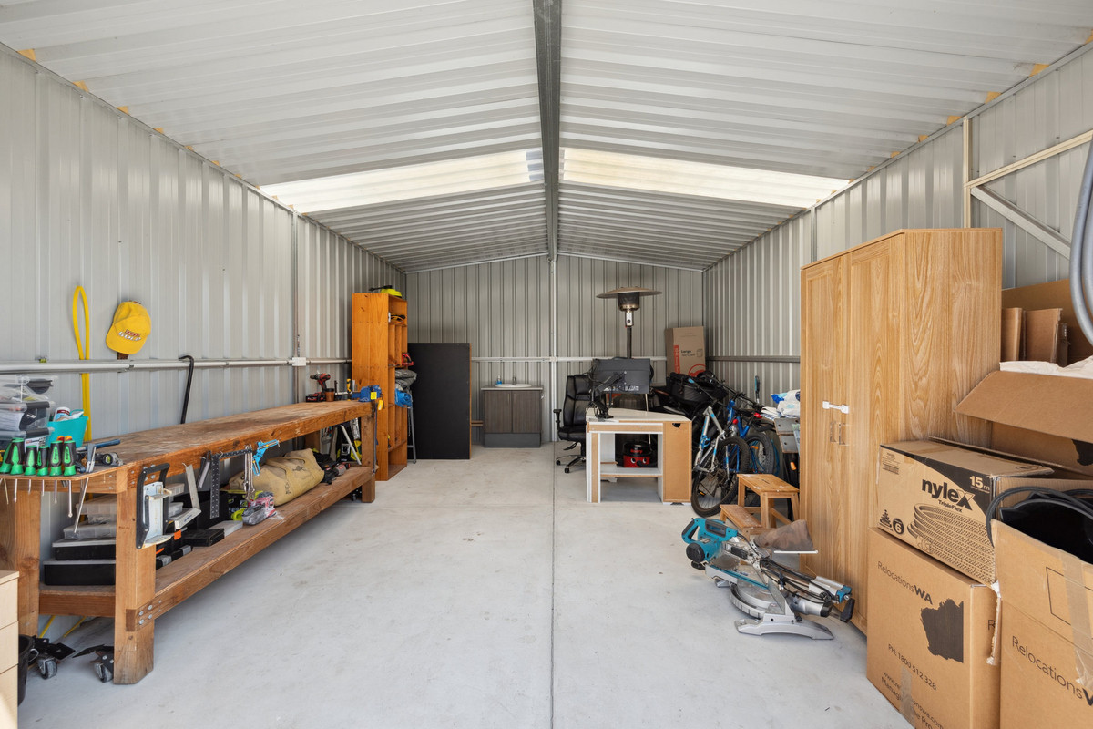 A huge concrete slab covers the rear corner of the backyard with your powered and newly built workshop centred on top, providing plenty of room to the surround, with roller door entry and toilet / ablution facilities already in place. And the remainder of the garden is lawned, with a shady tree and a garden shed, leaving the entire side of the home for your vast gabled roof patio, allowing for endless gatherings, whilst the concrete to the floor extends out to the side access gates, creating a hard stand and additional parking options.