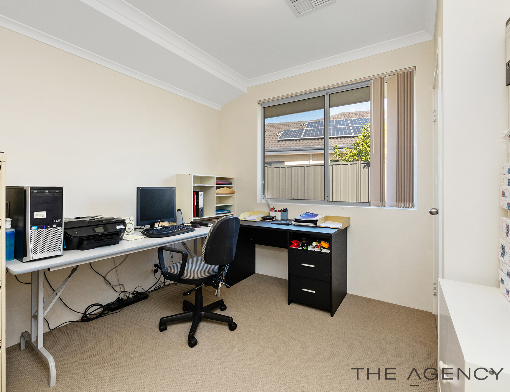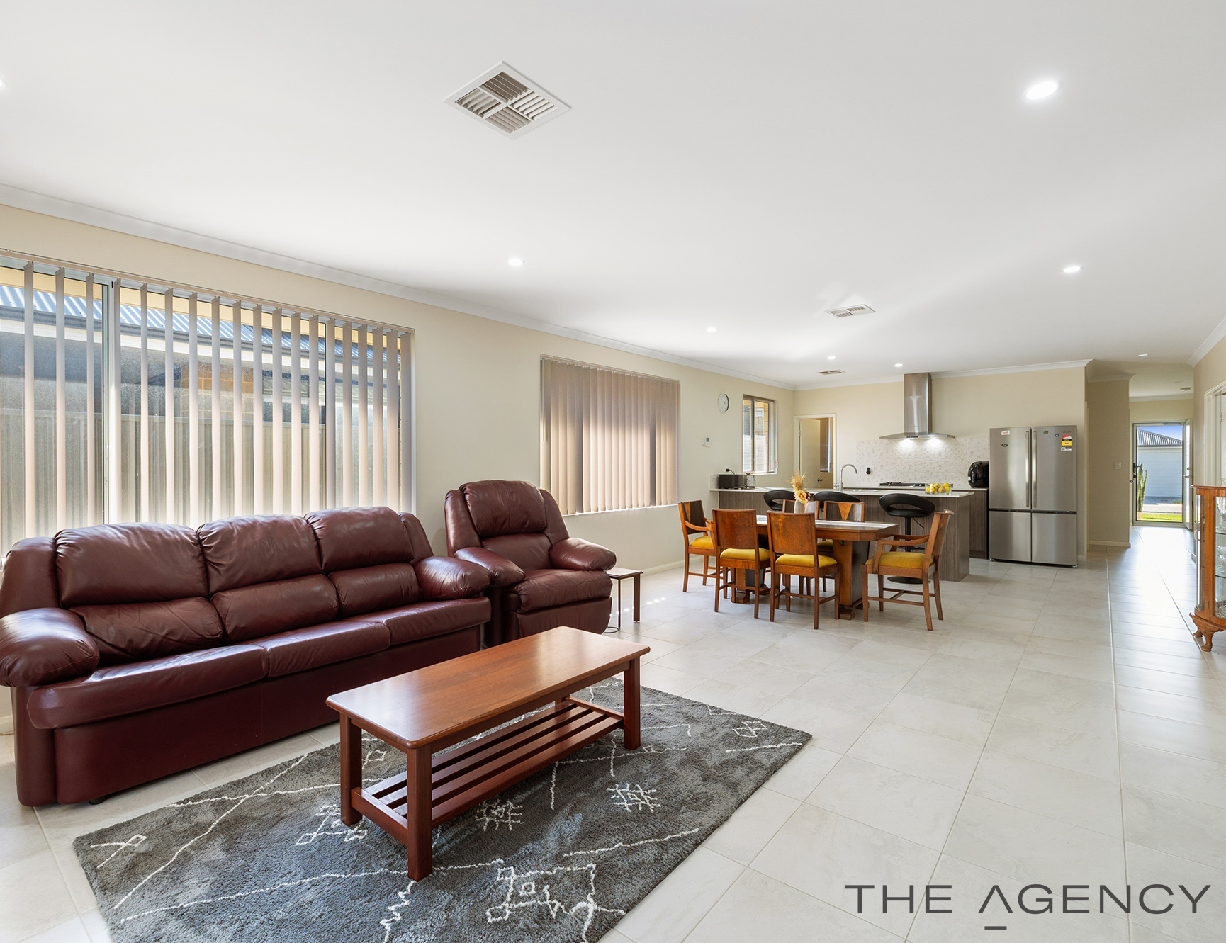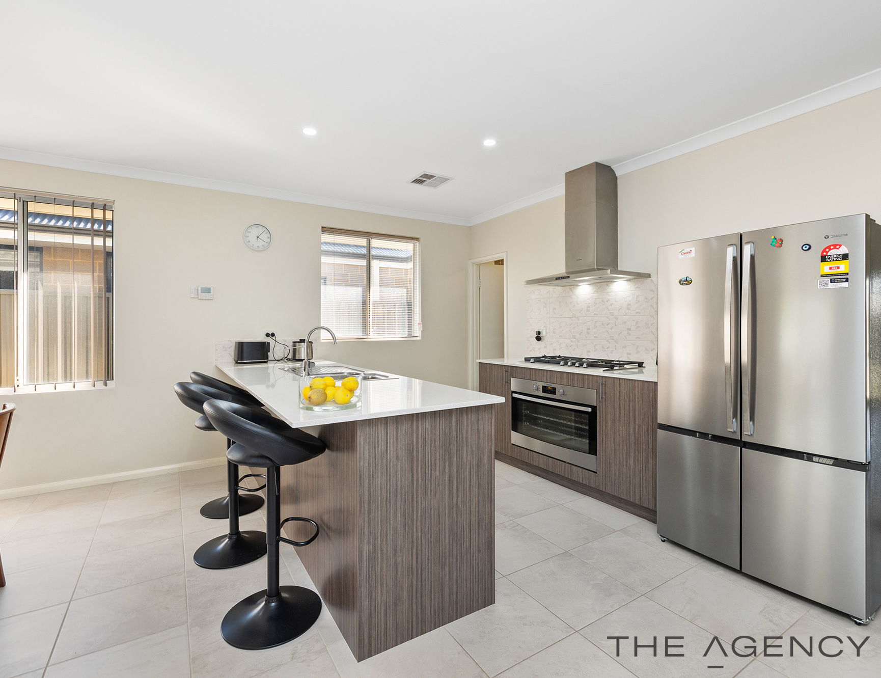 - Generous 174m² of living space (223m² under the main roof). - Ducted Fujitsu reverse cycle air conditioning for year-round comfort. - Separate theater room with double-door entry. - Study or large storage room to suit your lifestyle needs. - Spacious open-plan main living area with tiled flooring, and premium finishes throughout. - Gourmet kitchen featuring stone benchtops, 900mm appliances, a large walk-in pantry, and a breakfast bar. (Dishwasher included in the sale) - Spacious master suite with a large walk-in robe and elegant ensuite. - Well-sized secondary bedrooms, all with built-in robes. - Bonus CCTV system