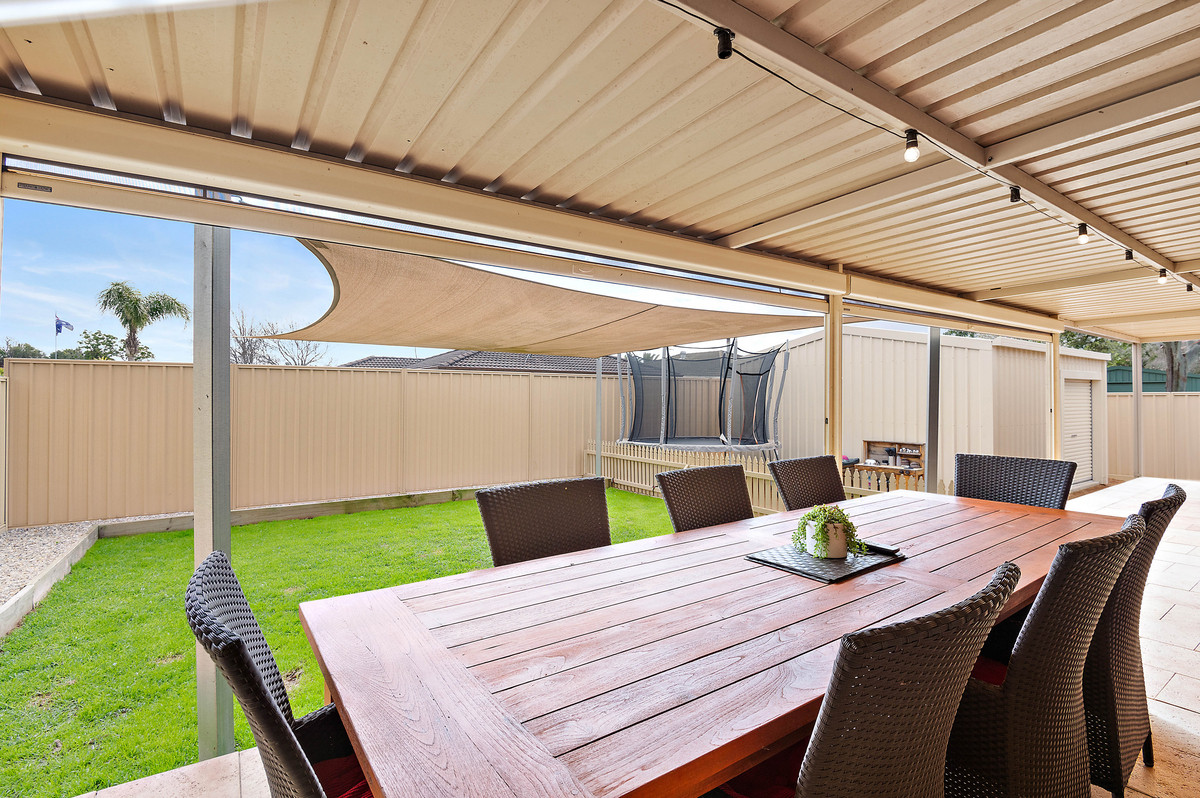 Large Alfresco Area with Café Blinds Grassed Backyard Area