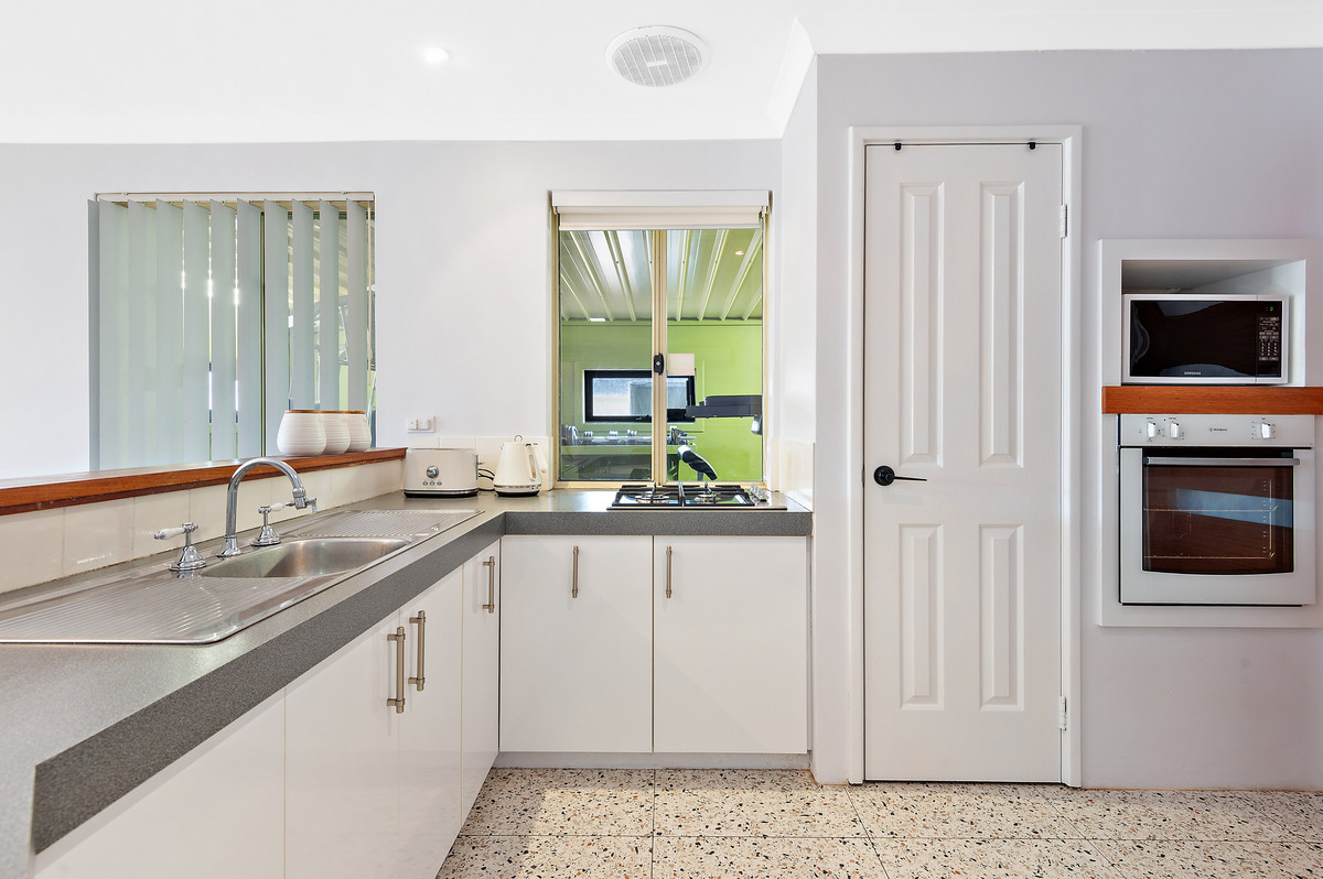 The home also boasts an enclosed patio area, that makes for the perfect home gym or a games room for your children. Straight off the kitchen, family, meals, you'll come out to a stunning and large alfresco area with café blinds that leads onto a little grassed backyard. On top of that. There is also side access for your caravan, boat or trailer, there's also a workshop as well.