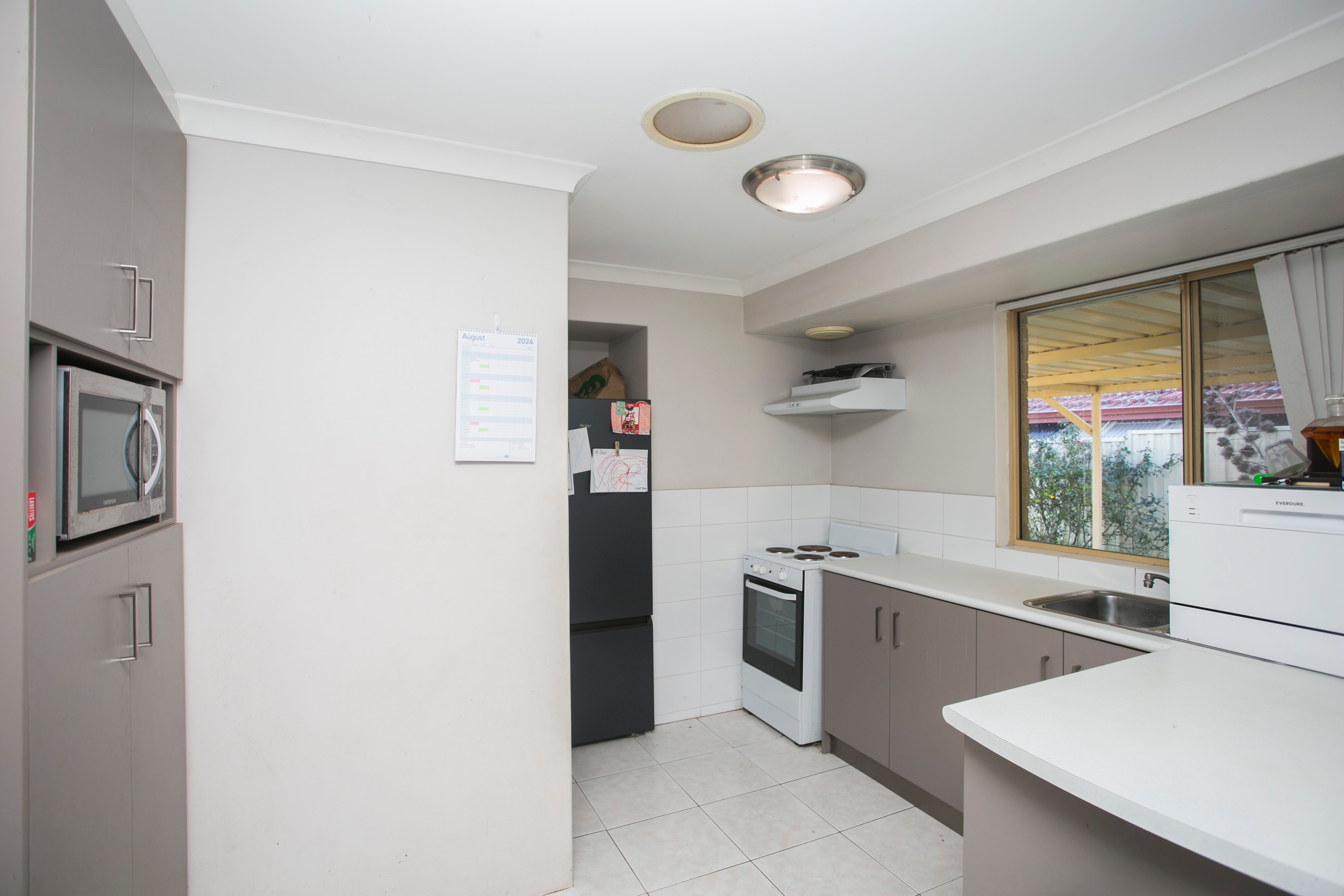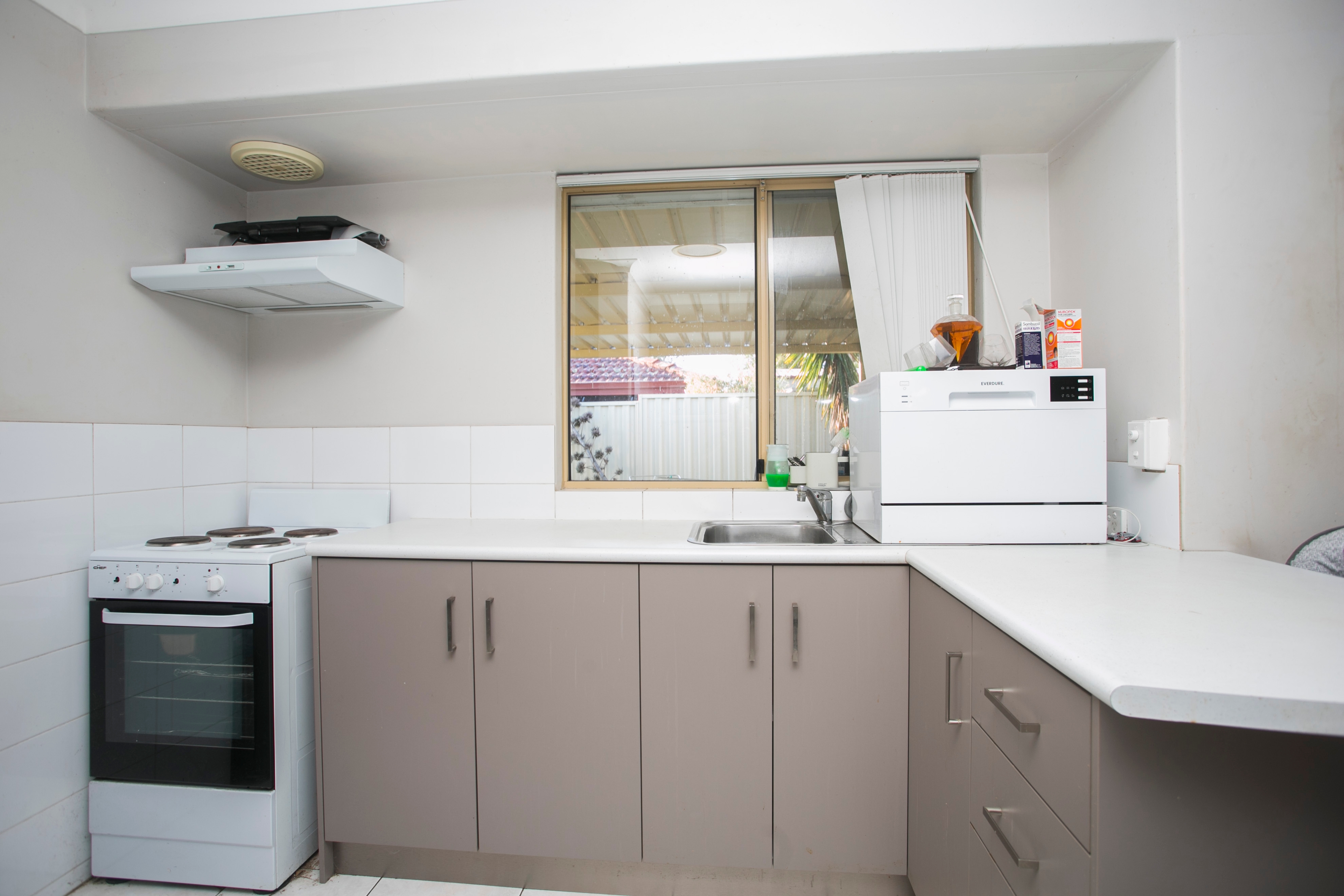 The kitchen is centrally located nearby the dining and living area, and it is a fair size - complete with plenty of room for all your appliances and kitchen-wares. This area features a stainless-steel sink, electric-oven and cooktop, overhead rangehood, plenty of cabinetry, and a window to look out to the rear yard as you cook. For dishing up your favourite meals, this is the place to do it!