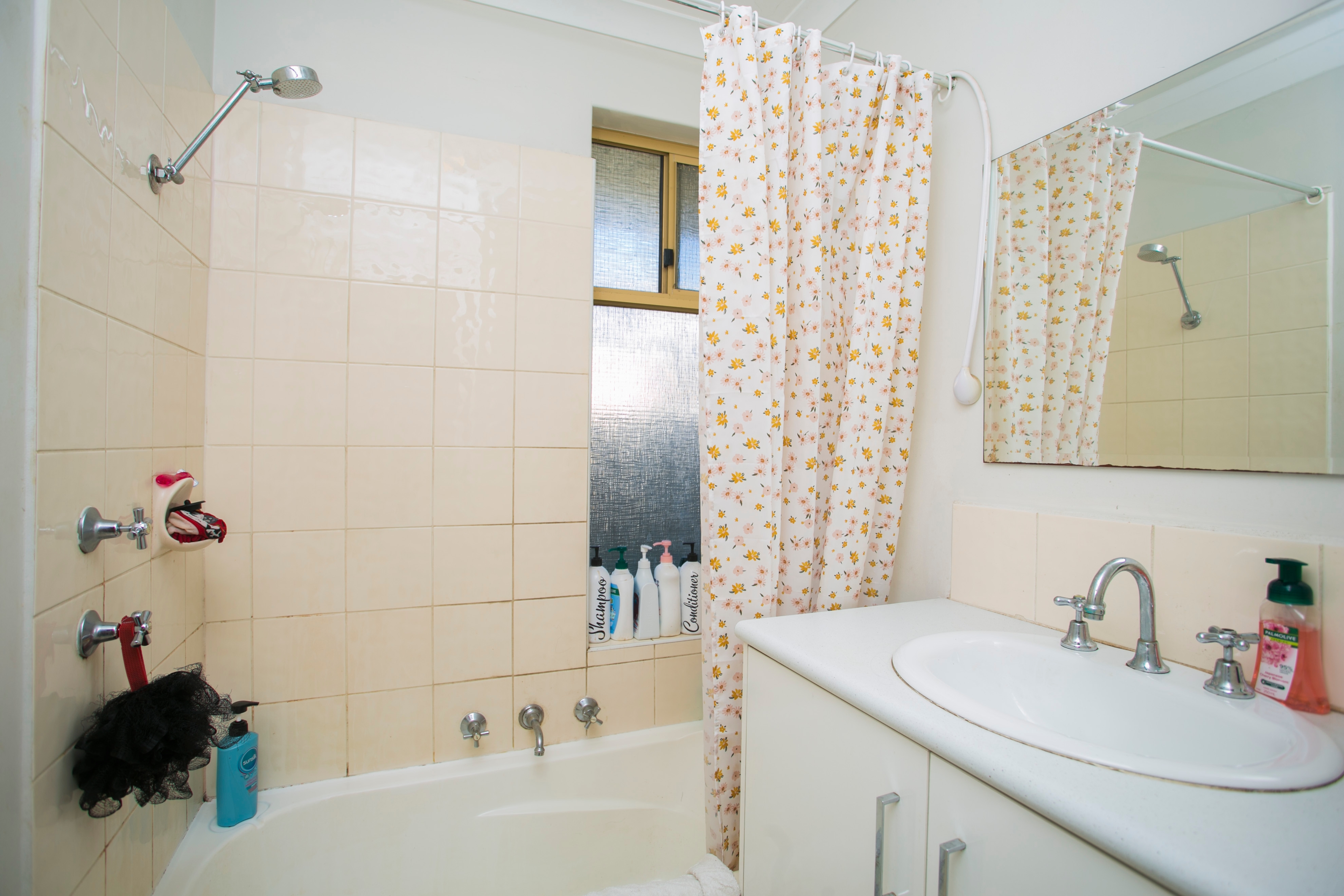 All four bedrooms in the home are quite a good size, and best of all, they all have ceiling fans to assist with the heat! There is also robe areas to each bedroom, to help with storage solutions. The main bathroom is nearby and has combined bath/shower and vanity.