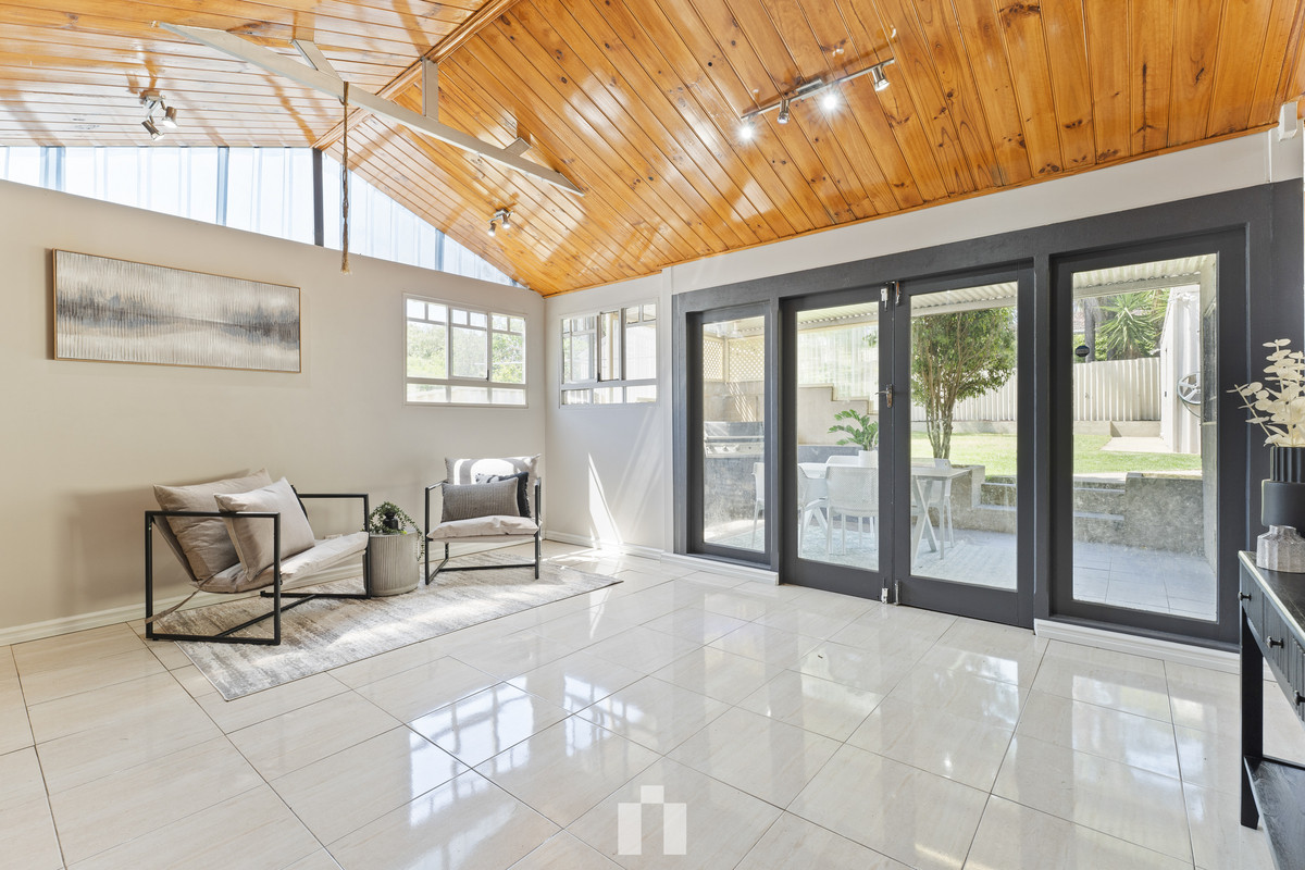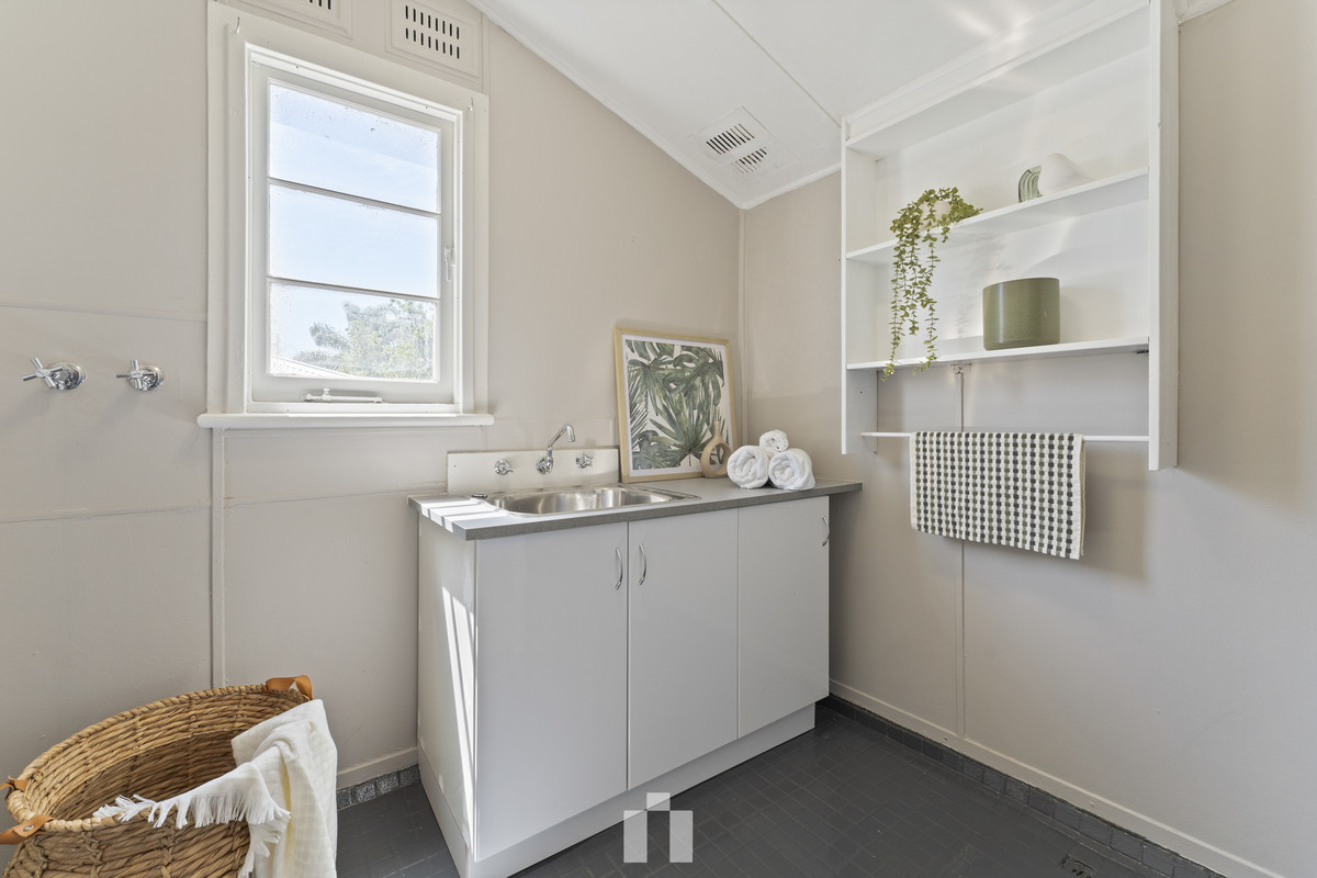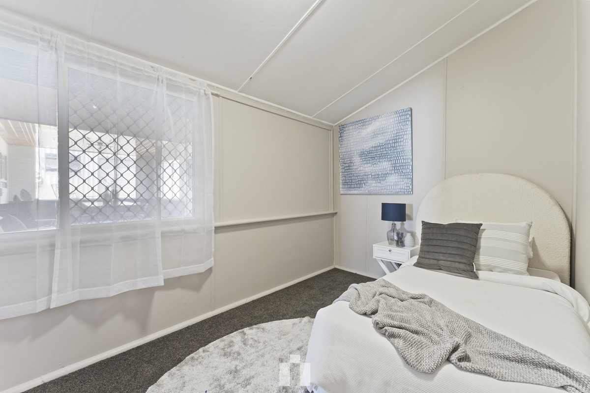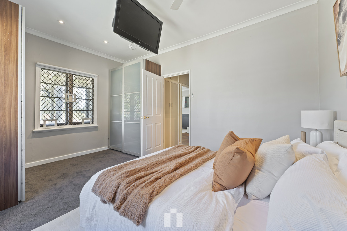 - Front yard adorned with lush garden beds and a tropical feel. - Relax on the veranda with timber decking, overlooking gorgeous gardens. - The lounge room exudes warmth with polished timber floors, timber venetians, downlights, and security screens with a Split System Air-con - The main bedroom is an ideal retreat, complete with two double built-in robes, a ceiling fan, and a ceiling-mounted TV—perfect for cozy movie nights. - The main bathroom has been refurbished - A gorgeous kitchen that's a chef's dream. - The bar area includes three bar fridges