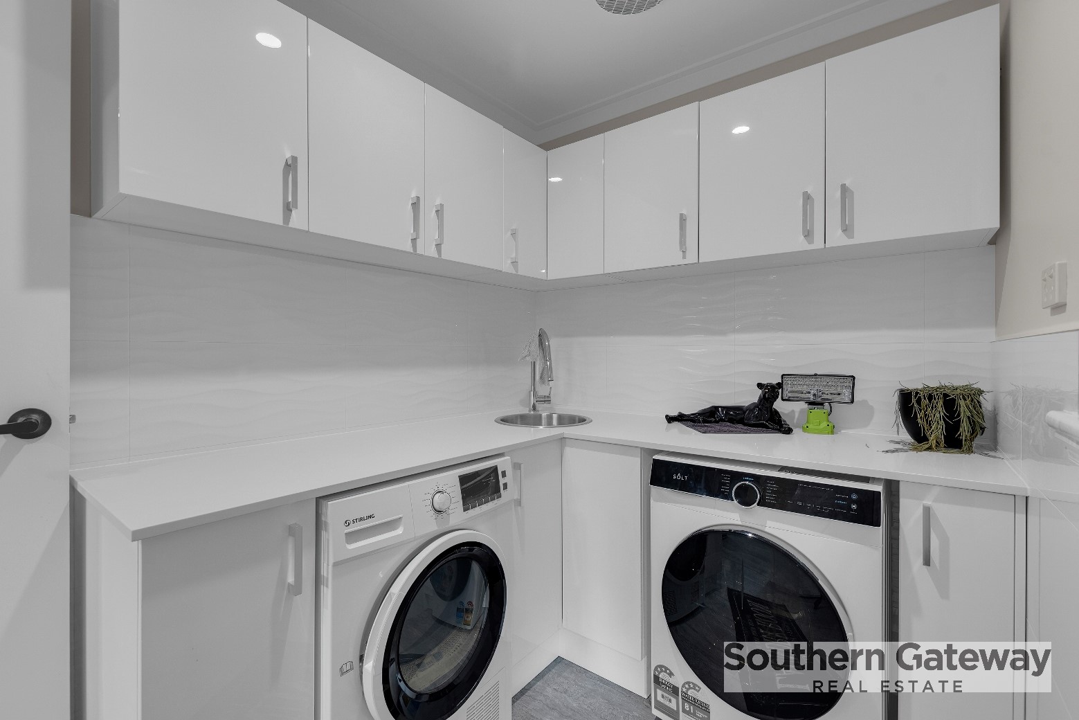 Entertainment options abound with a dedicated "Man Cave," equipped with its own outdoor access and two additional reverse cycle air conditioning units. Outside, enjoy the convenience of a double garage with backyard access, complemented by an artificial lawn that extends to both the front and back yards, perfect for low-maintenance living.