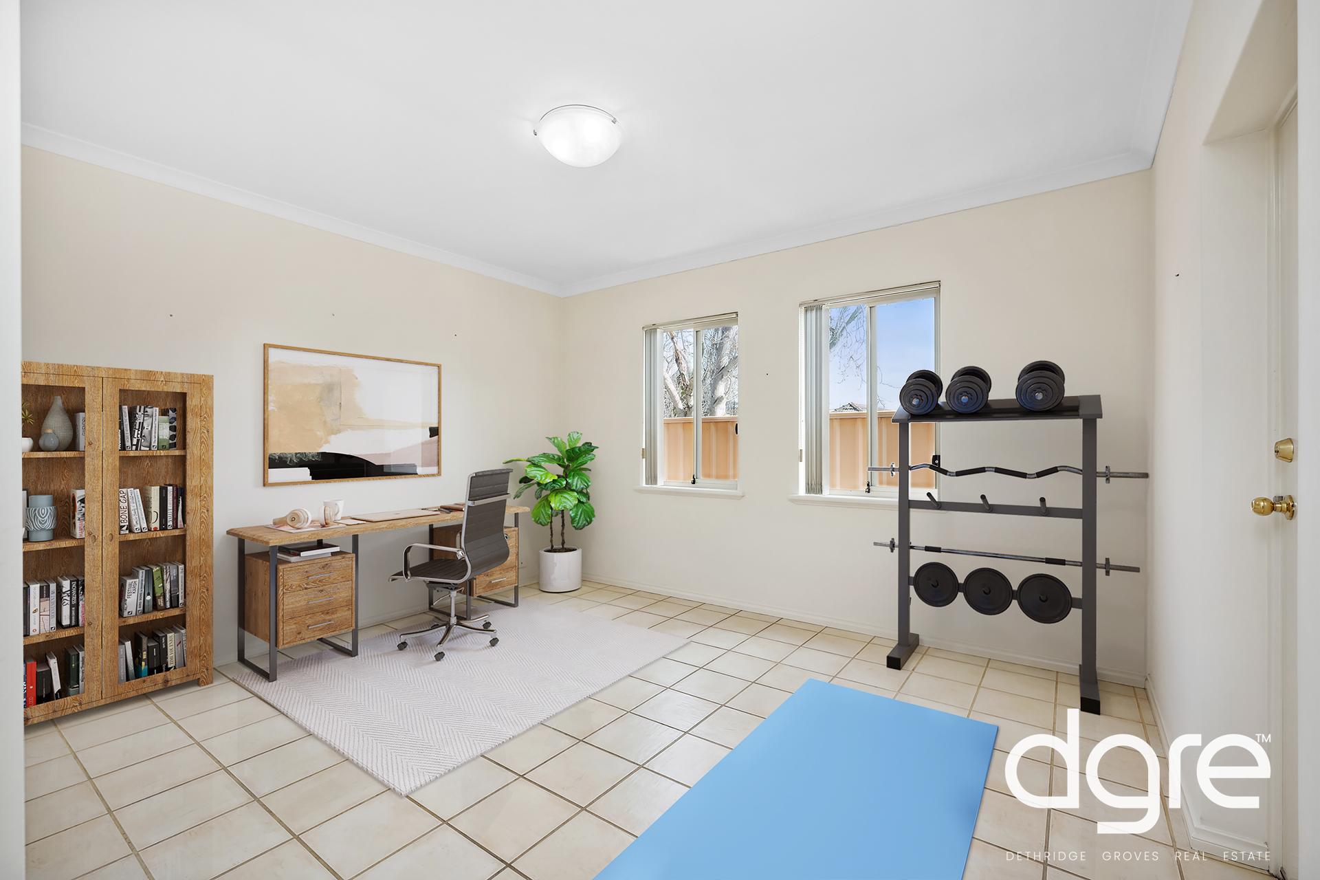 Thoughtfully designed, the home features a spacious floorplan with three bedrooms, 2.5 bathrooms and a secure double garage plus a bonus multifunctional room with courtyard access perfect for a home office, study, games or 4th bedroom. The living area downstairs has good separation from the bedrooms upstairs to create different zones for everyday activity and rest.