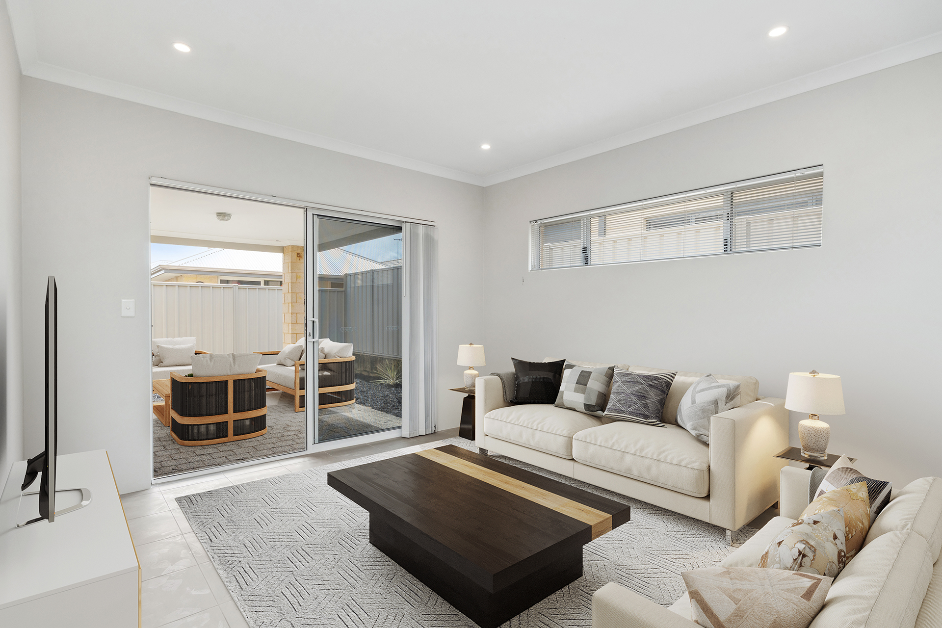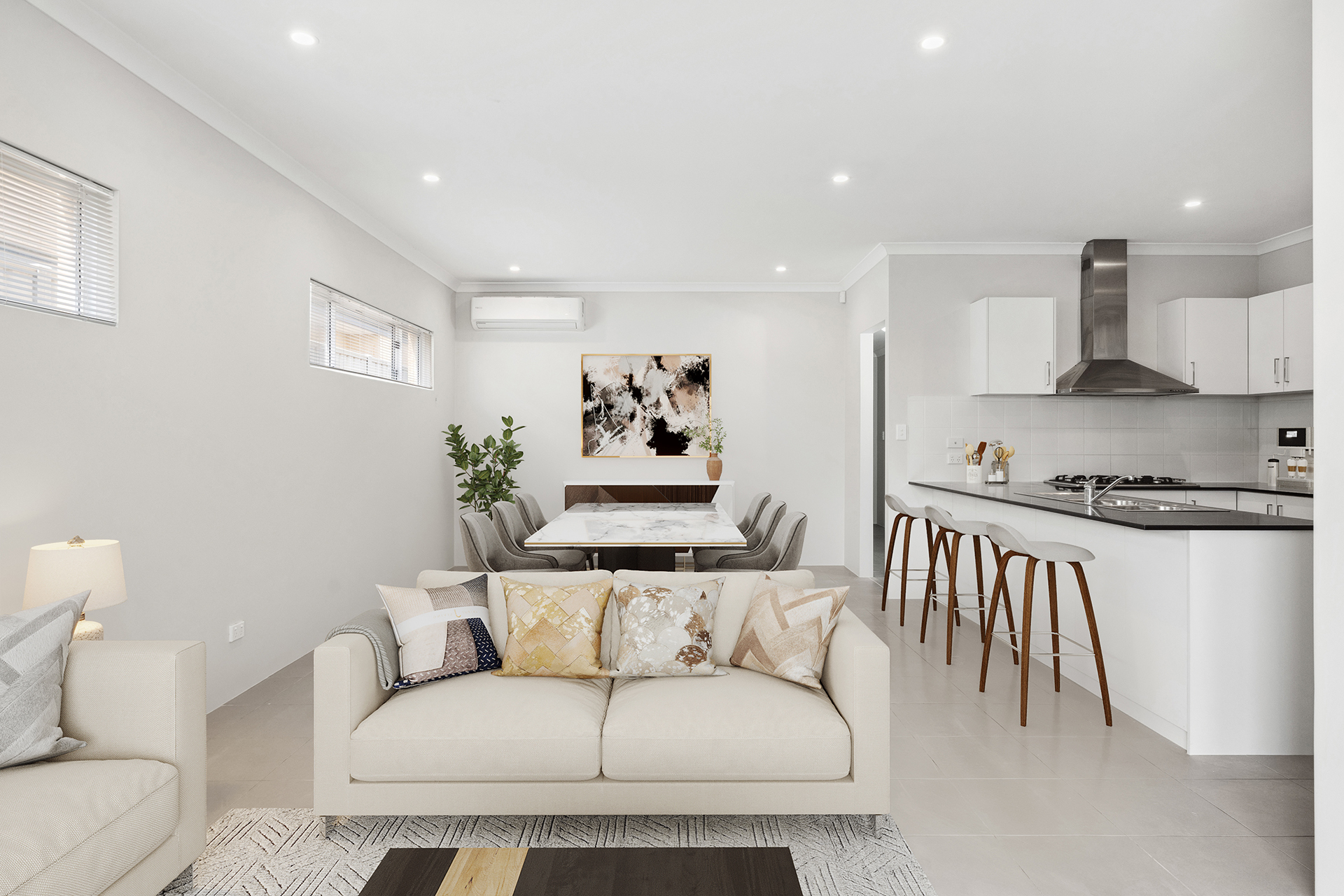 - The open plan living area is flooded with natural light and is the perfect place to put your feet up and relax. With a reverse cycle airconditioner you'll have all year climate control too!