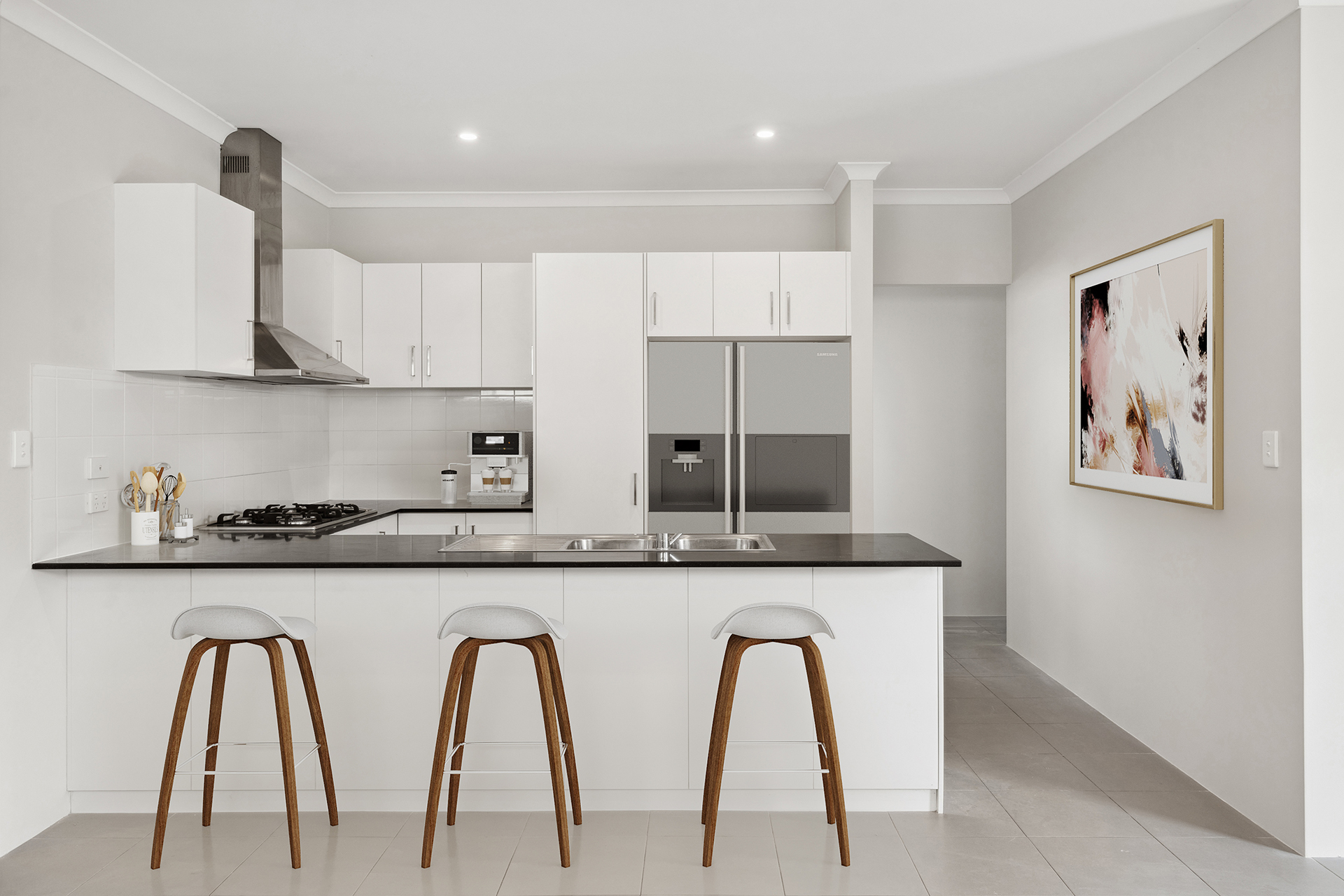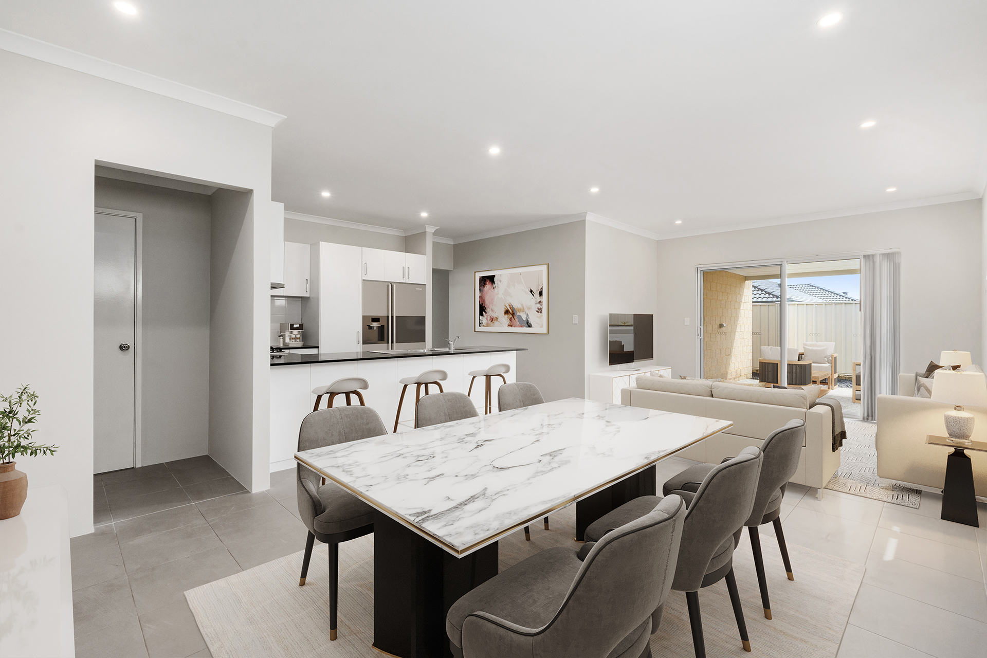 - The Dining & living areas are overlooked by the kitchen and all have superb, easy to clean, tiled flooring.