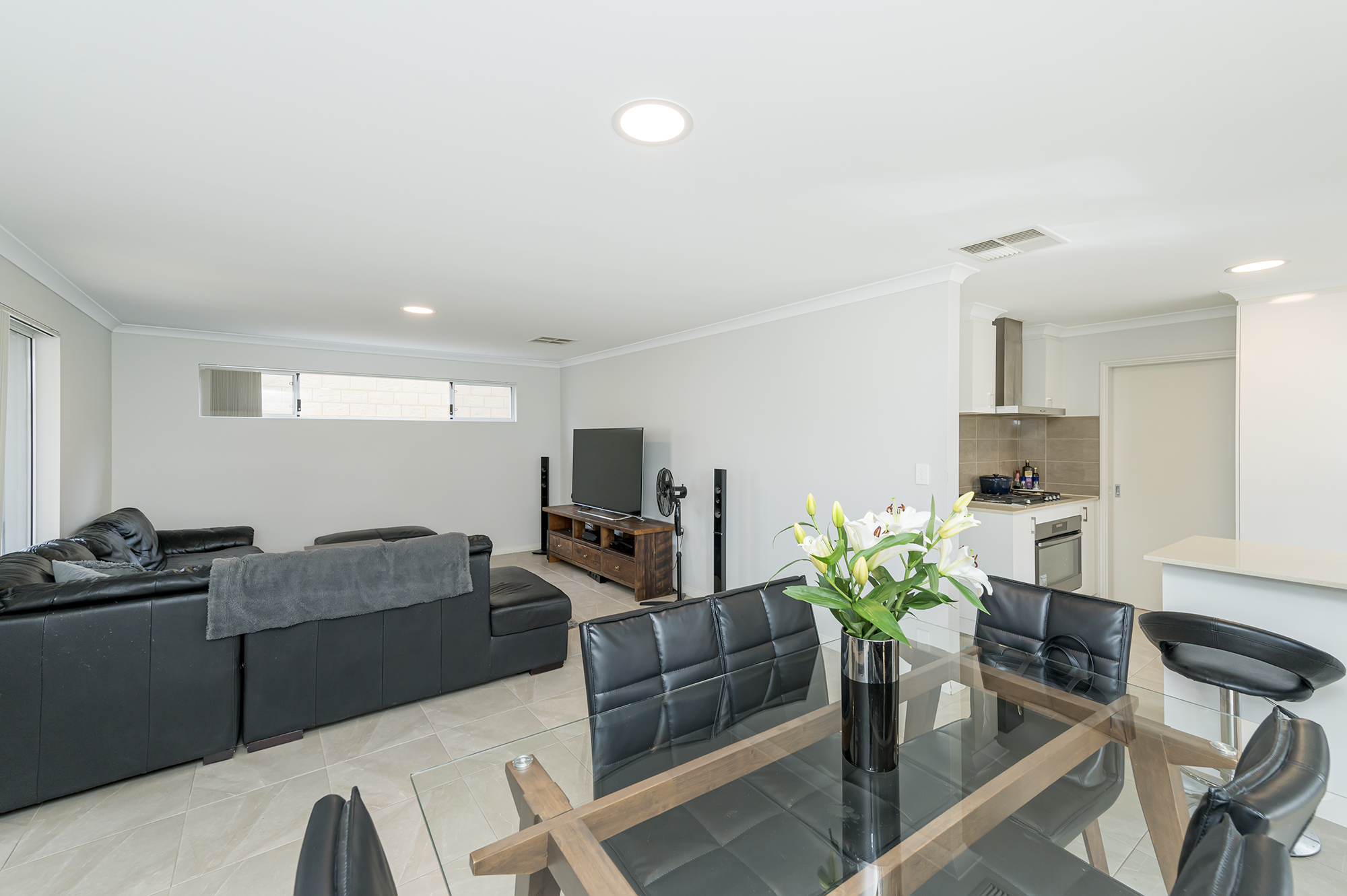 Open plan living, kitchen and dining areas
