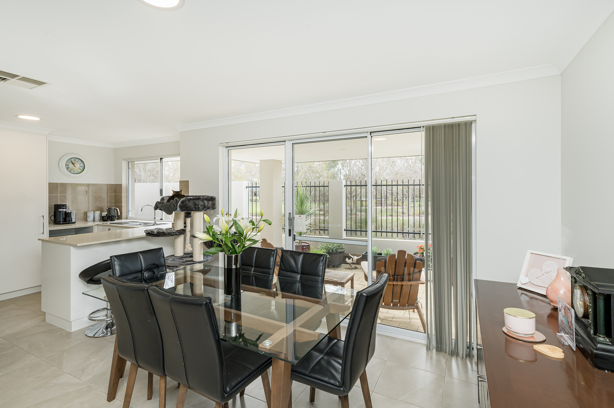 Enjoy family meals in your dining room looking out over lush Sotheby Park, open your sliding doors in summer, and extend your living areas onto an undercover, paved courtyard. The highlight of the home, this is a beautiful zone, easily large enough to accommodate plenty of garden furniture – the ultimate in peaceful luxury. A wonderful sanctuary to contemplate your day with coffee or wine in hand, or simply sit with a book. Rather than looking over a fence or neighbours, this side of the home enjoys a sweeping view of mature trees and greenery – your very own private, hidden nook and slice of nature right outside your back door!