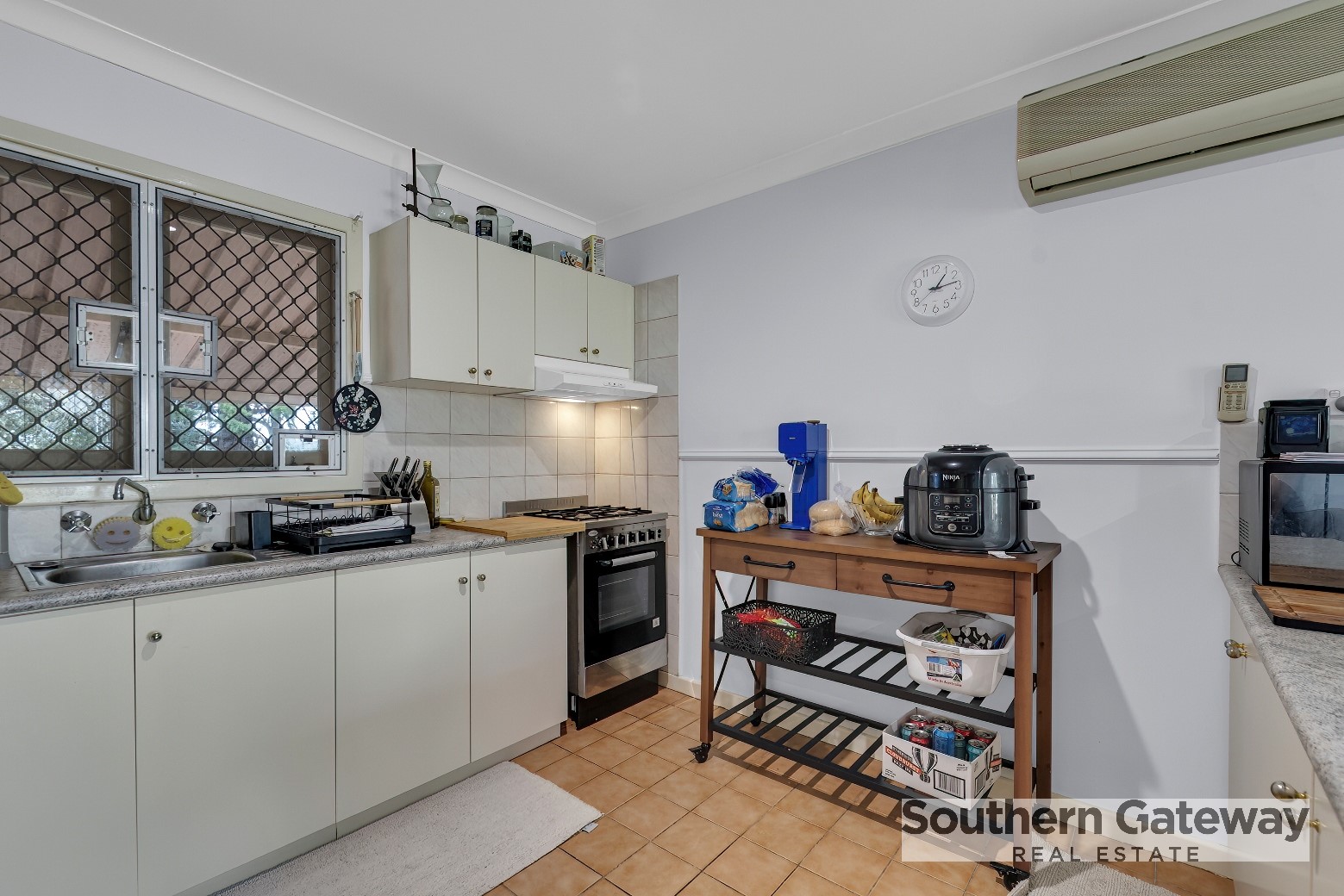 An additional study nook provides a great space for work or study. The home boasts a well-sized kitchen with ample storage, complemented by reverse cycle air conditioning in the kitchen and living area.