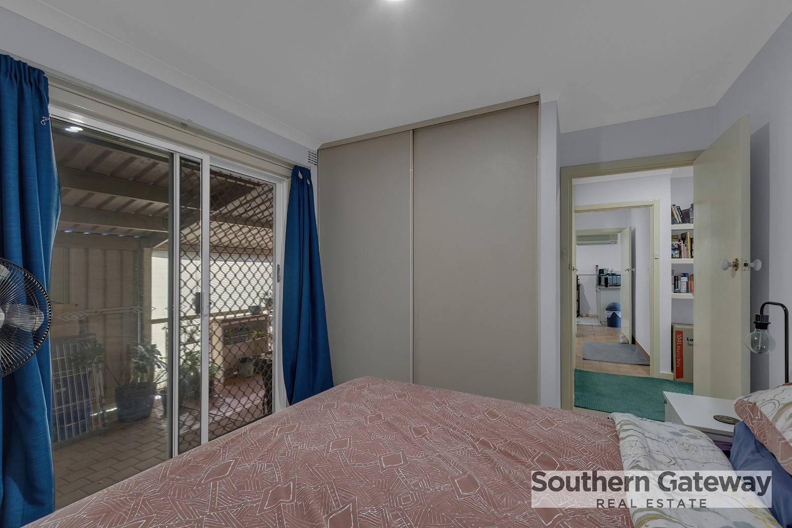 The main bedroom features a built-in robe and private outdoor access, while one of the minor bedrooms also includes built-in storage.