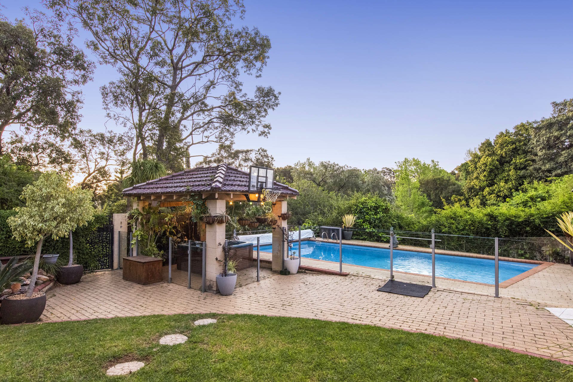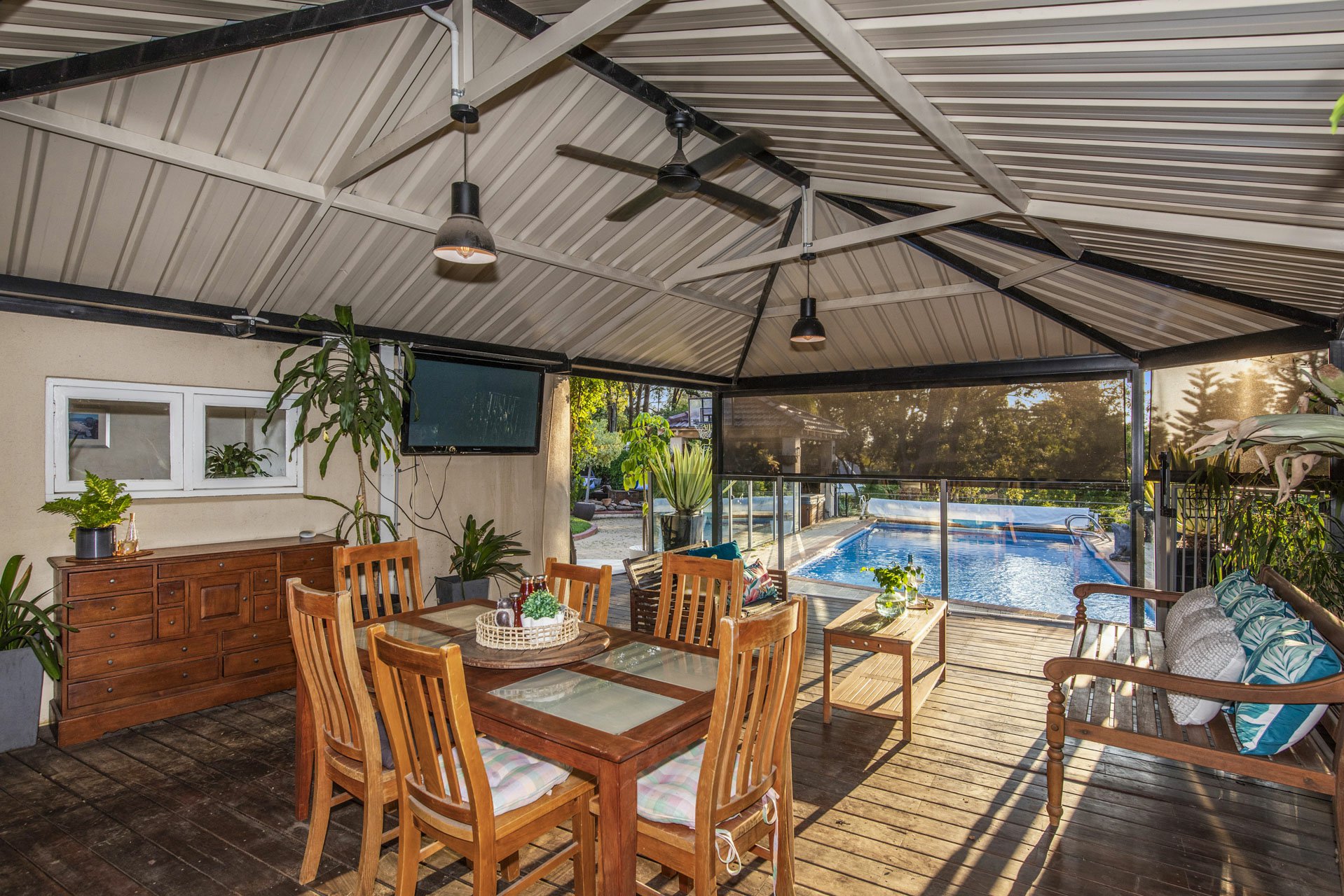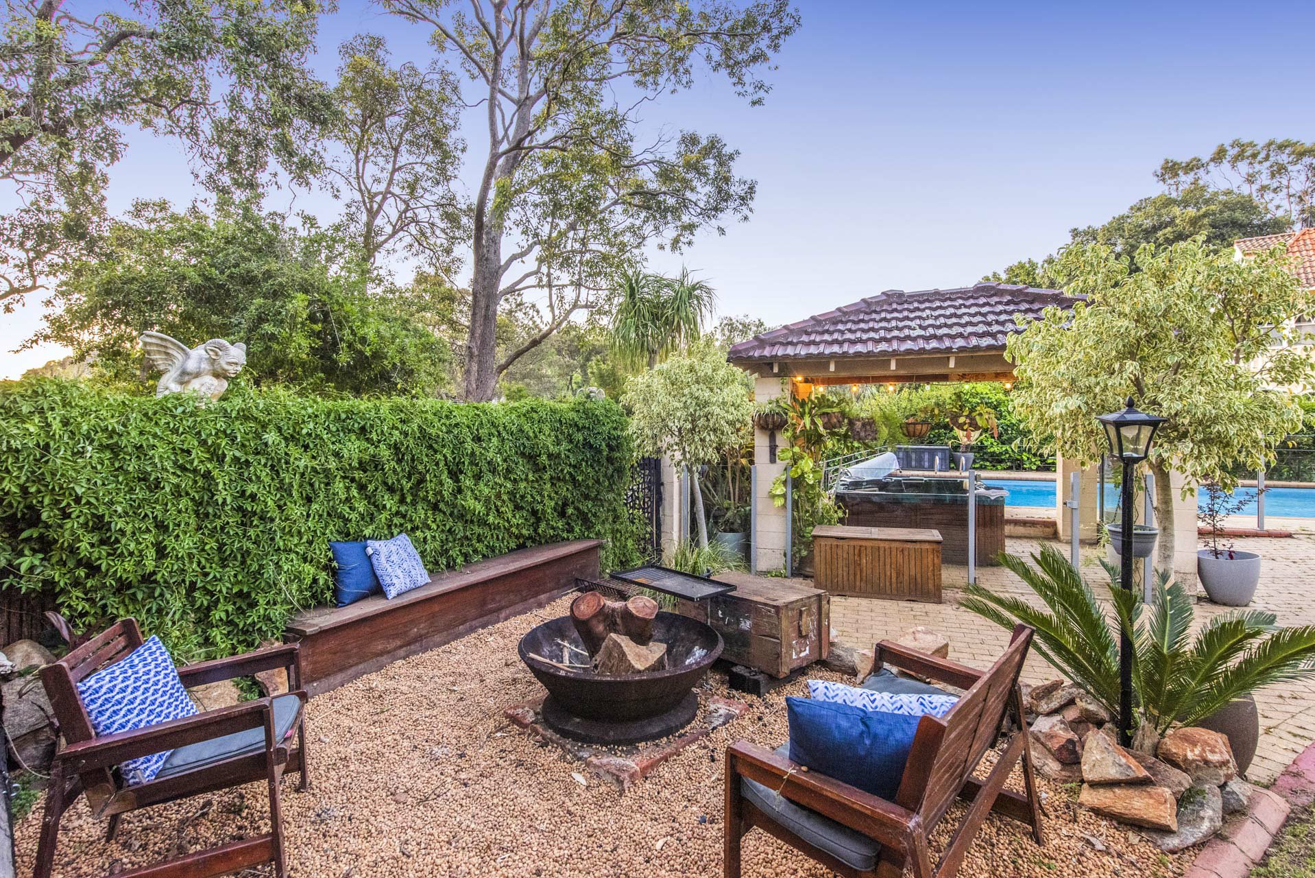 * Downstairs rumpus/games room with kitchenette & handy third shower for the kids to have their own space * Three under house man-caves PLUS impressive walk-in cellar/larder to hide in * Oversize double lock up garage with remote door and shopper's entrance * Large vegie garden and chook run * 7 x 4m gabled patio with timber deck, drop down screens & ceiling fans * Below ground salt water pool + five-seater spa * Manganese fire pit with adjoining koi ponds * Secondary fire pit and sitting area at high point of block * Kids grassed play area and fishing boat cubby house