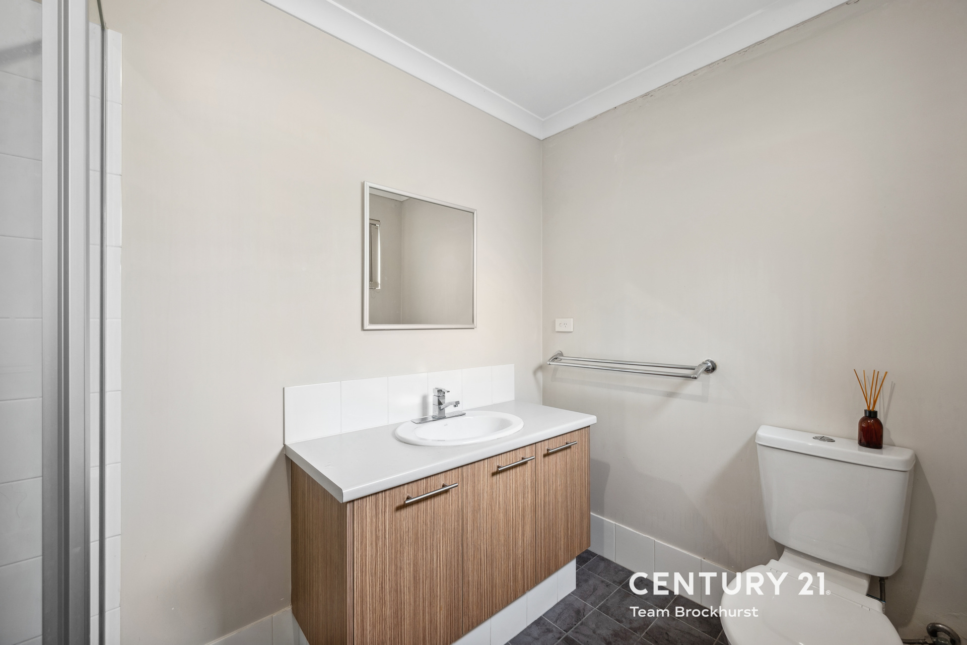 The master suite serves as a private retreat, featuring access to the rear courtyard, a 4-door robe, and an ensuite bathroom with an enclosed shower and modern vanity. The secondary bedrooms are well-sized, each equipped with built-in robes, and are serviced by a main bathroom that matches the master ensuite's contemporary design.