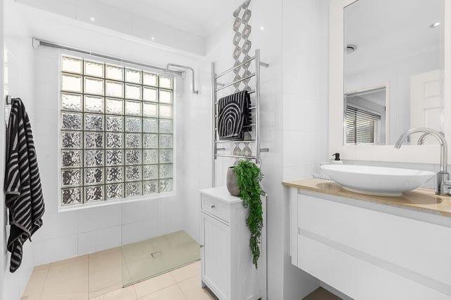 • Semi-Ensuite: Renovated semi-ensuite with hobless shower, stone benchtops, overmount vanity, heated towel rail, and full height tiling.